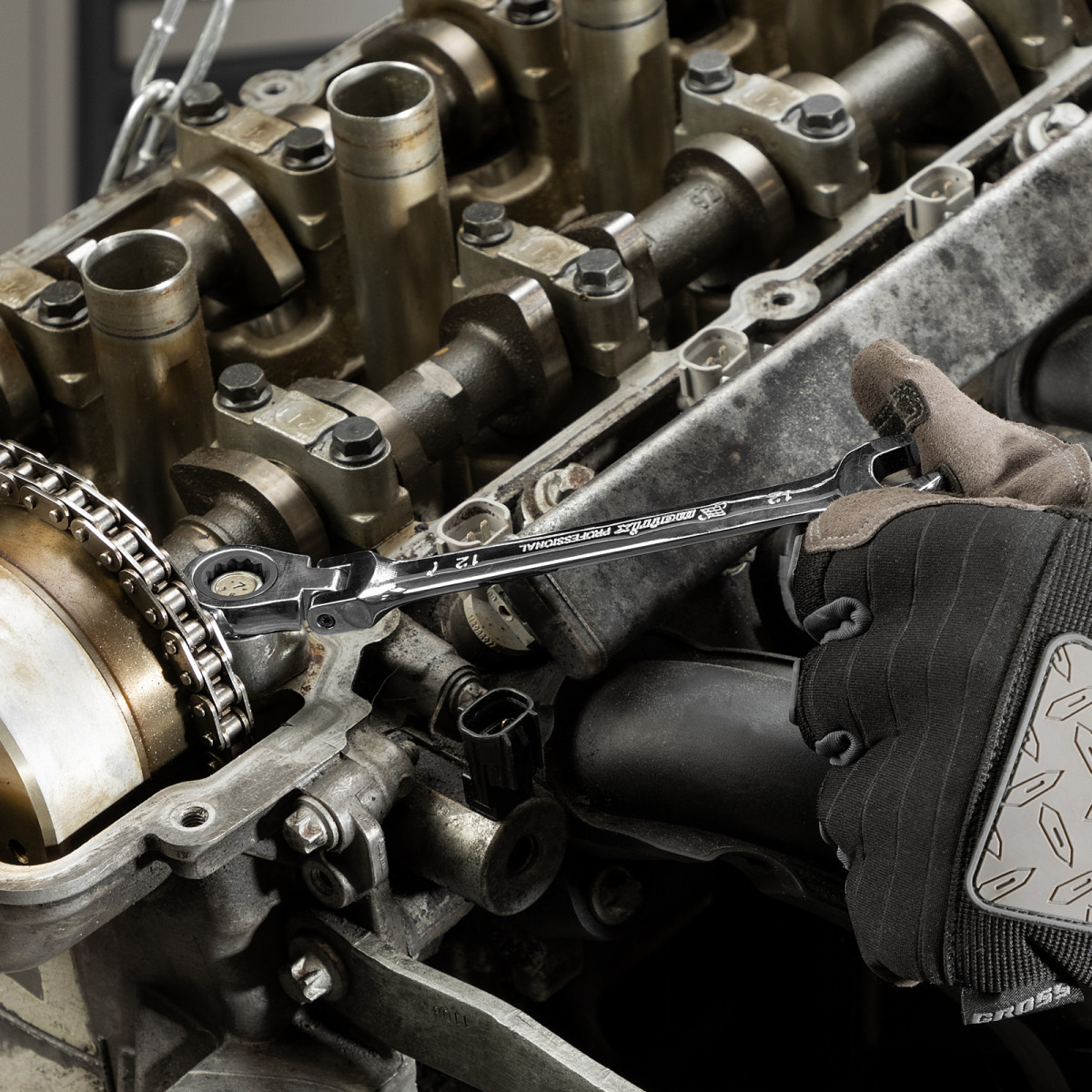 Набор из 13 комбинированных трещоточных шарнирных ключей Matrix 14798 пригодится мастерам и автолюбителям для фиксации и раскручивания крепежных элементов. Трещоточный механизм повышает скорость работы и легко справляется даже с закисшим крепежом.