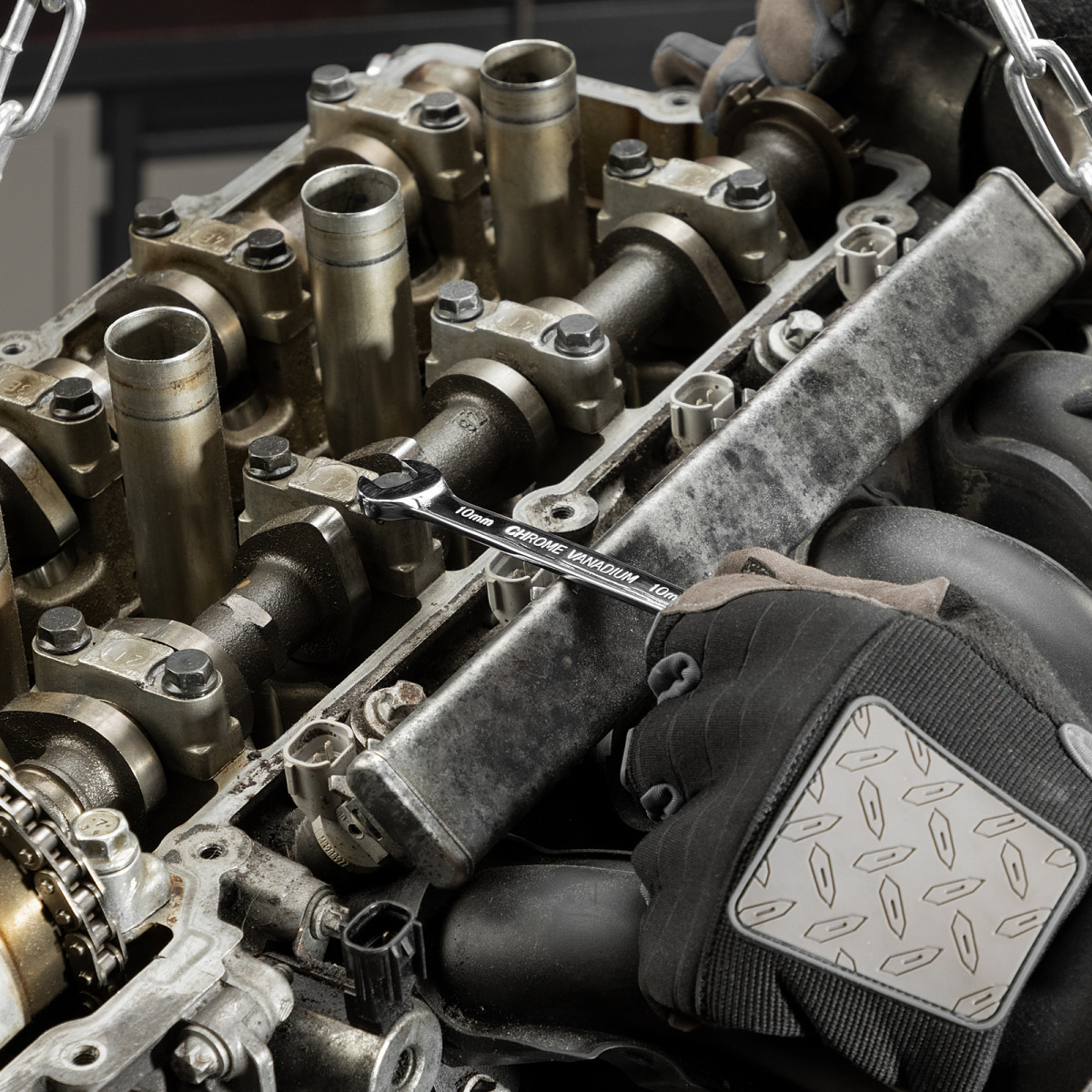 - Аккуратная работа — накидные части с 12-гранным профилем плотно охватывают головку крепежа, что снижает риск повреждения ее граней.