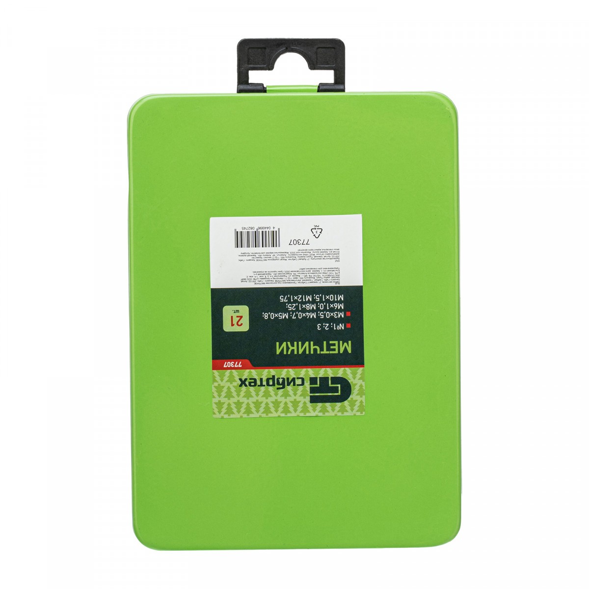 Набор метчиков Сибртех 77307 состоит из 21 предмета и предназначен для нарезания внутренней резьбы размером от М3 до М12 в сквозных и глухих отверстиях металлических и стальных деталей. Подойдет для использования в слесарной мастерской, автосервисе, дома или на даче. Набор поставляется в металлическом кейсе, поэтому инструменты не потеряются при хранении или перевозке.