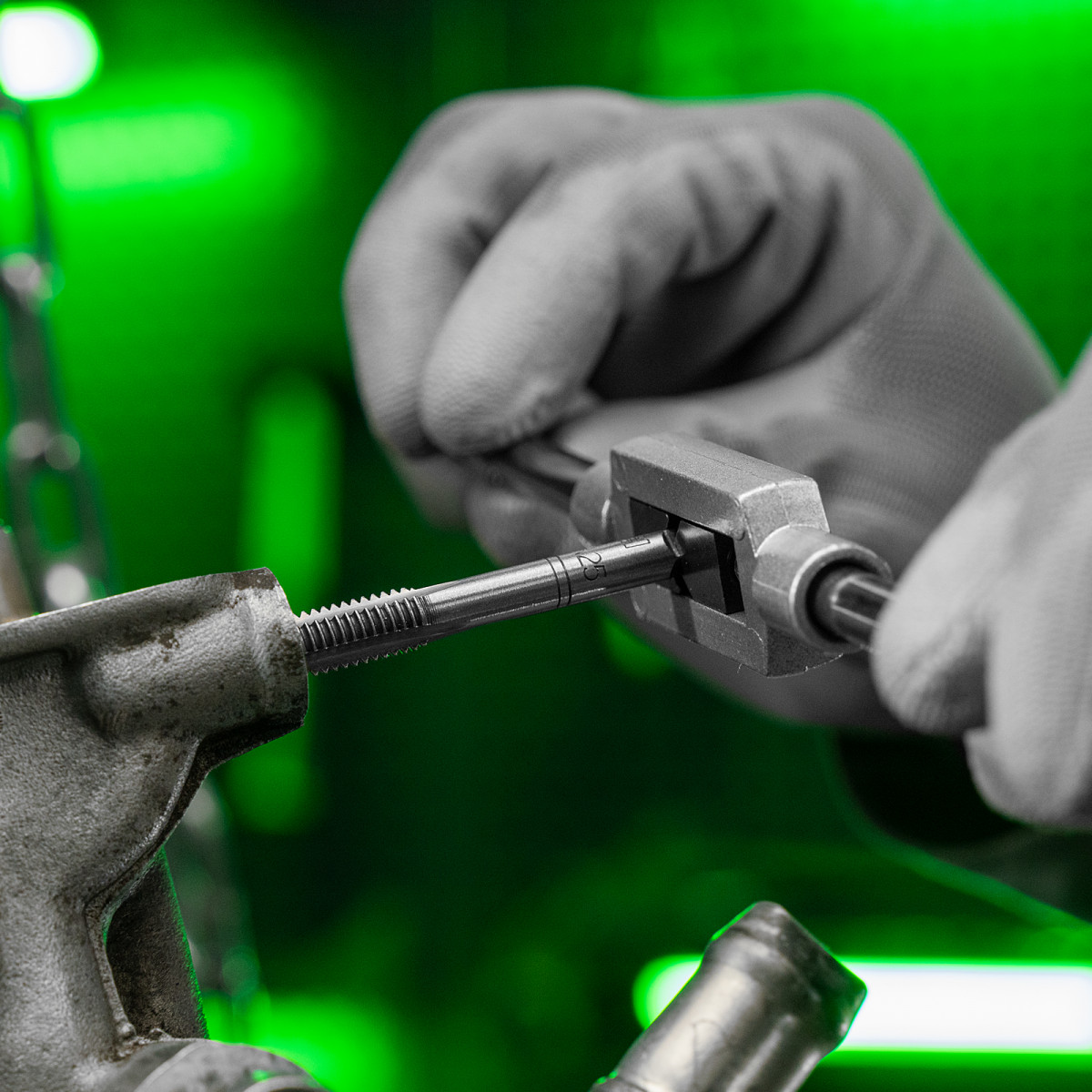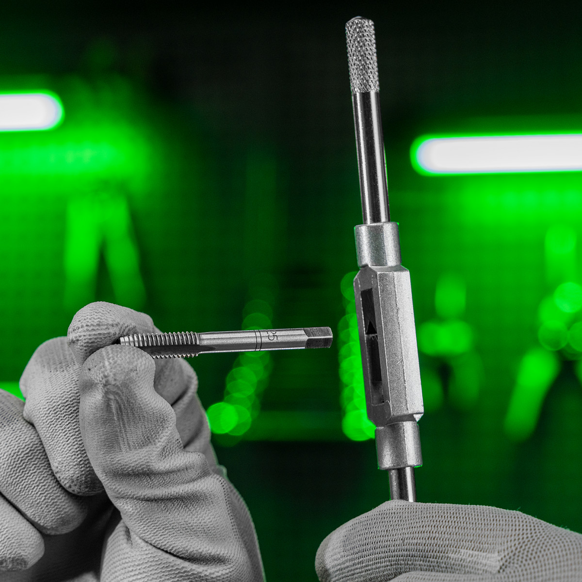- Прочность и долговечность — метчики изготовлены из высокоуглеродистой легированной стали 9ХС, устойчивой к повышенным нагрузкам.