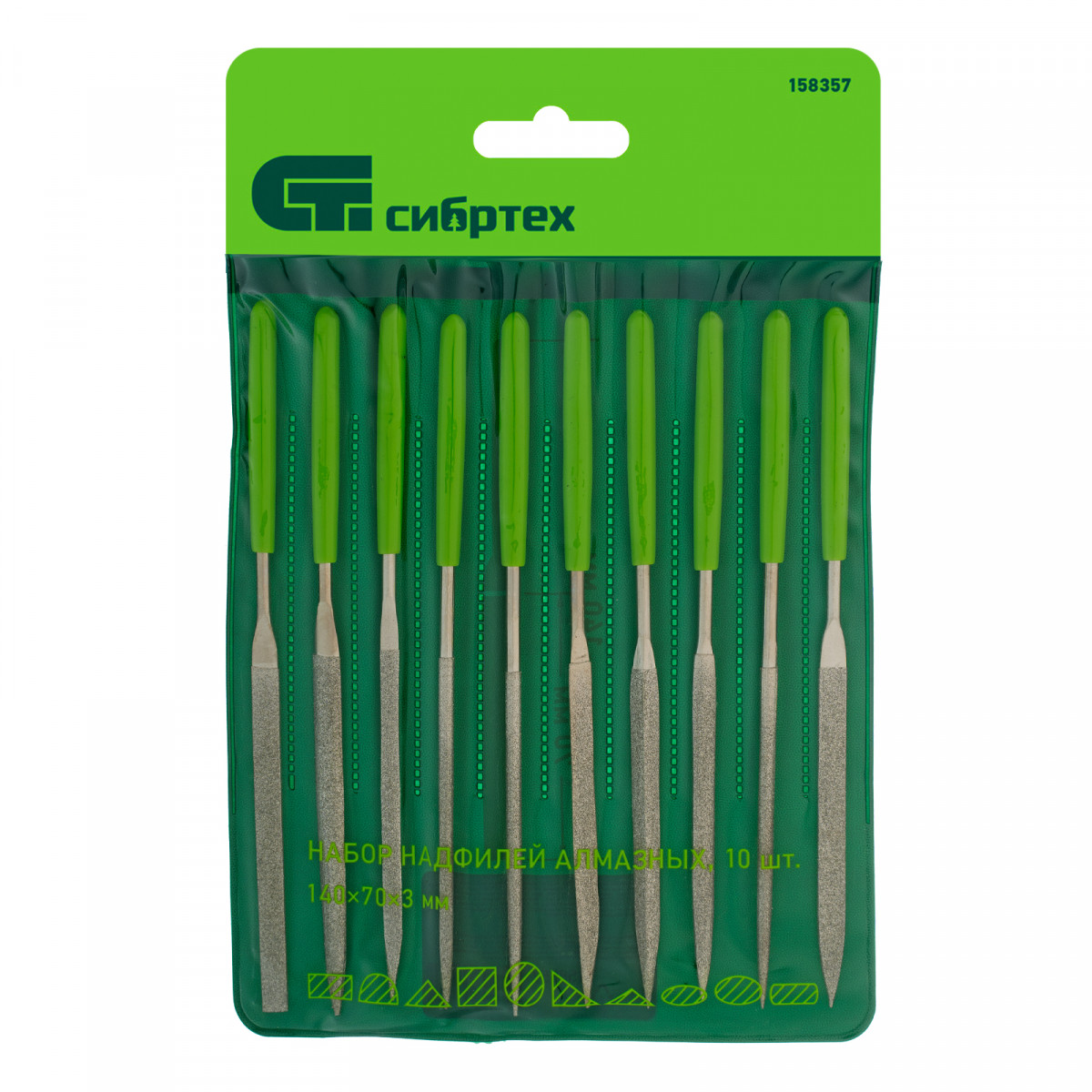Набор надфилей алмазных 140 х 70 х 3 мм, 10 шт Сибртех