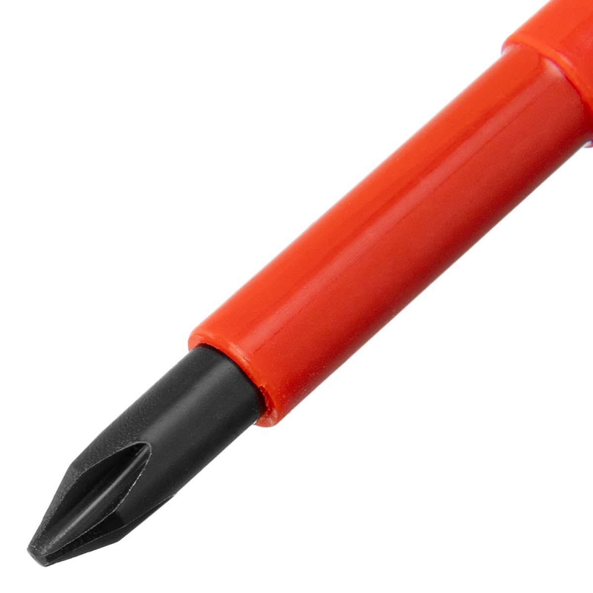 Набор диэлектрических отверток и тестер Сибртех 12937, CrV, с двухкомпонентными рукоятками, состоит из 5 предметов, которые пригодятся при обслуживании электрооборудования и электроприборов. Диэлектрическое покрытие защищает оператора от поражения током во время работ под напряжением до 1000 В. Широкий диапазон длины стержней отверток 80-125 мм позволяет выбрать оптимальную в зависимости от степени углубления крепежа. Важно — техника безопасности запрещает работу под напряжением даже при использовании инструмента с диэлектрическим покрытием!