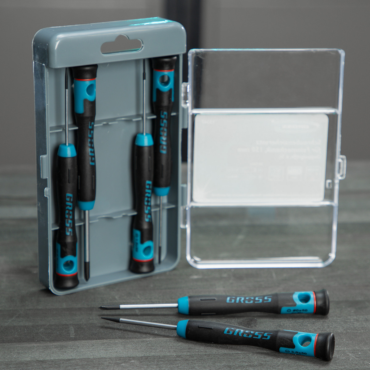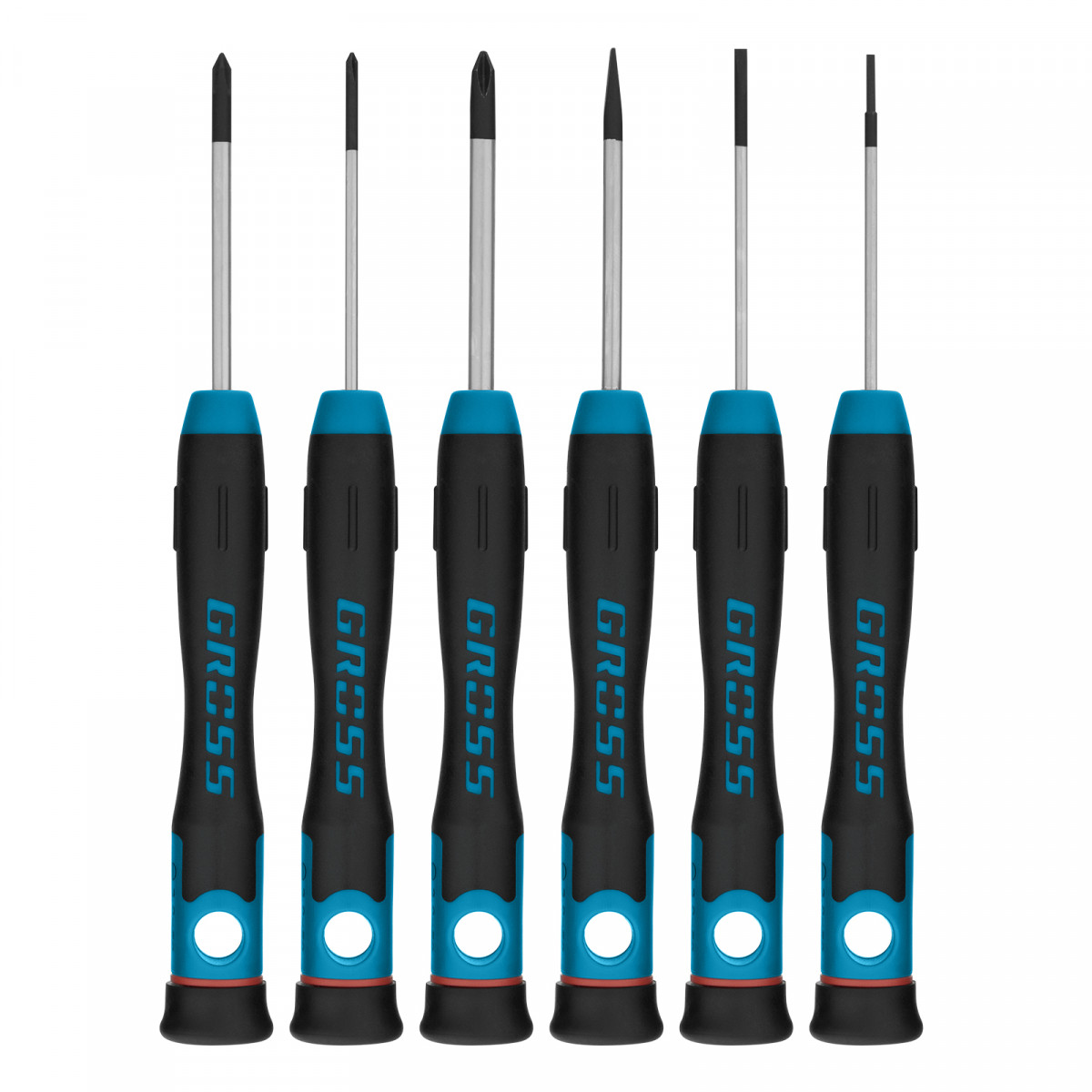 Набор отверток для точной механики, CrMo, двухкомпонентные рукоятки, 6 шт, пластиковый бокс Gross