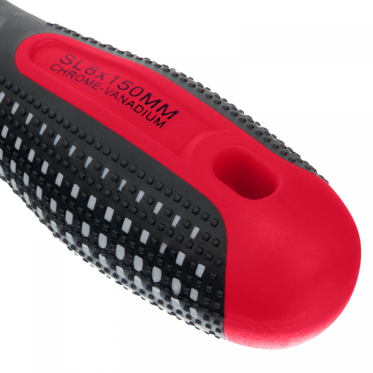 • Прочность и долговечность — стержни выполнены из хромованадиевой стали, твердость рабочих частей составляет 47-52 HRC, поэтому инструменты устойчивы к механическим нагрузкам.