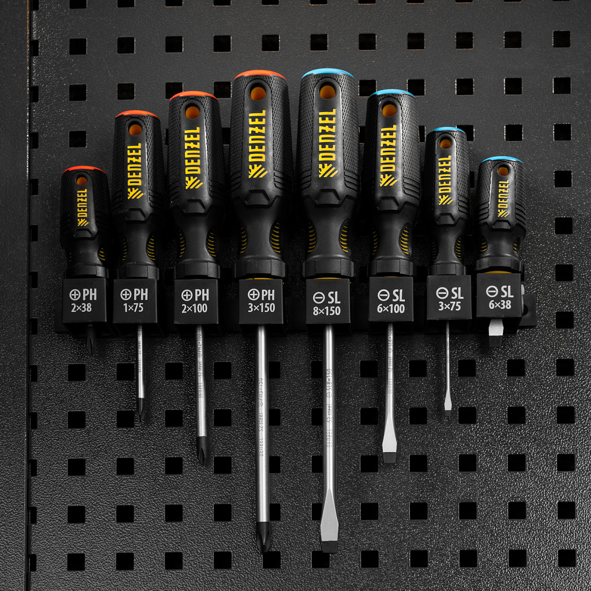 Набор отверток на полке, 8 шт., PH+SL, S2, 3к рукоятка Denzel
