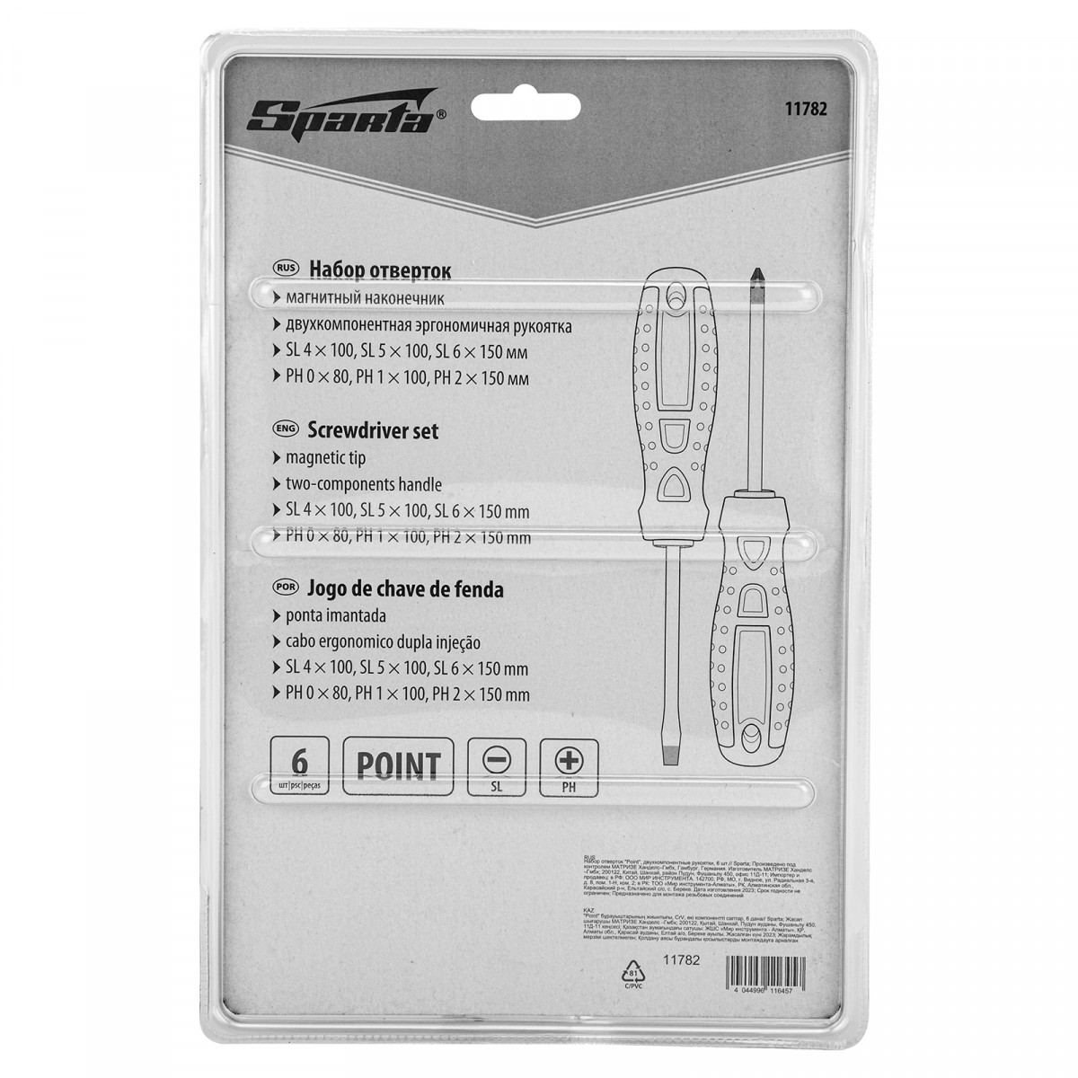 Набор отверток "Point", CrV, двухкомпонентные рукоятки, 6 шт, Sparta