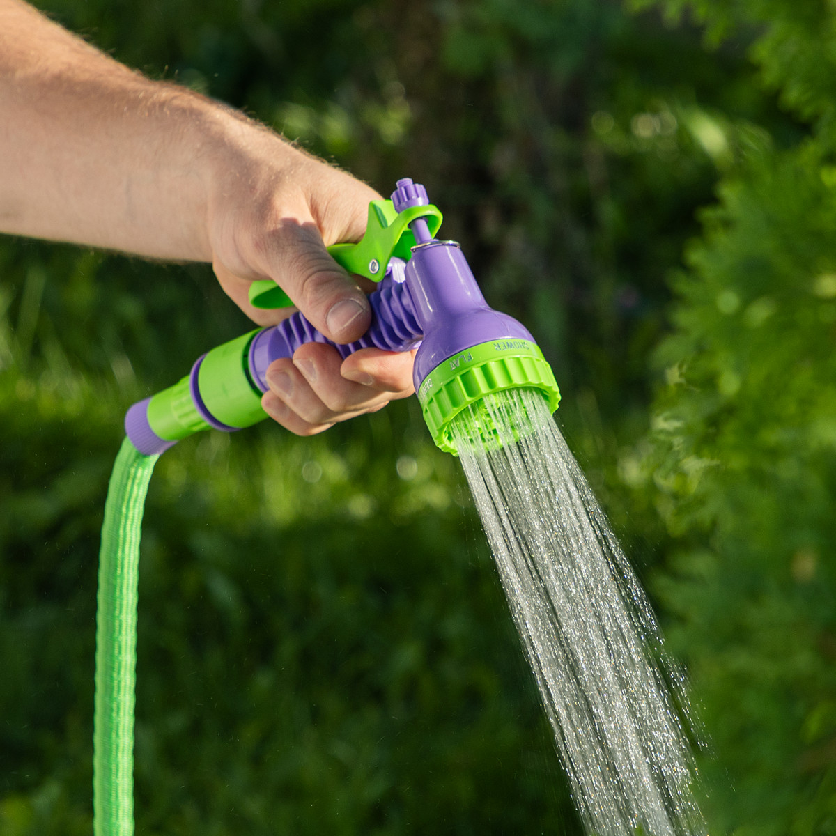 - Охват значительной площади полива — в растянутом состоянии длина шланга достигает 15 м.