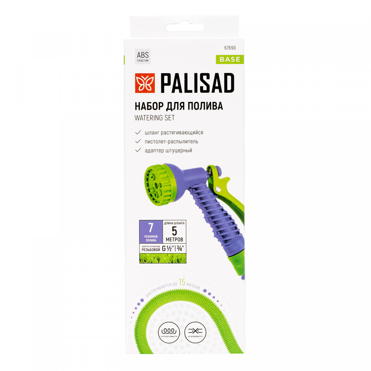 Набор поливочный, шланг 5-15 м, пистолет 7 реж., с быстросъемным соединителем Palisad