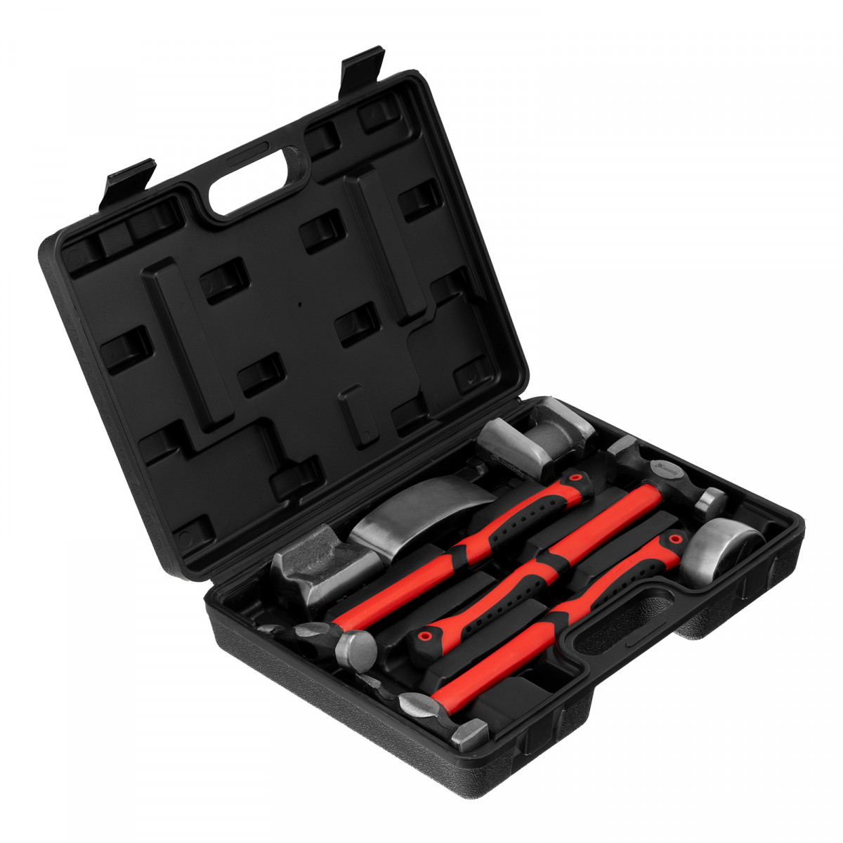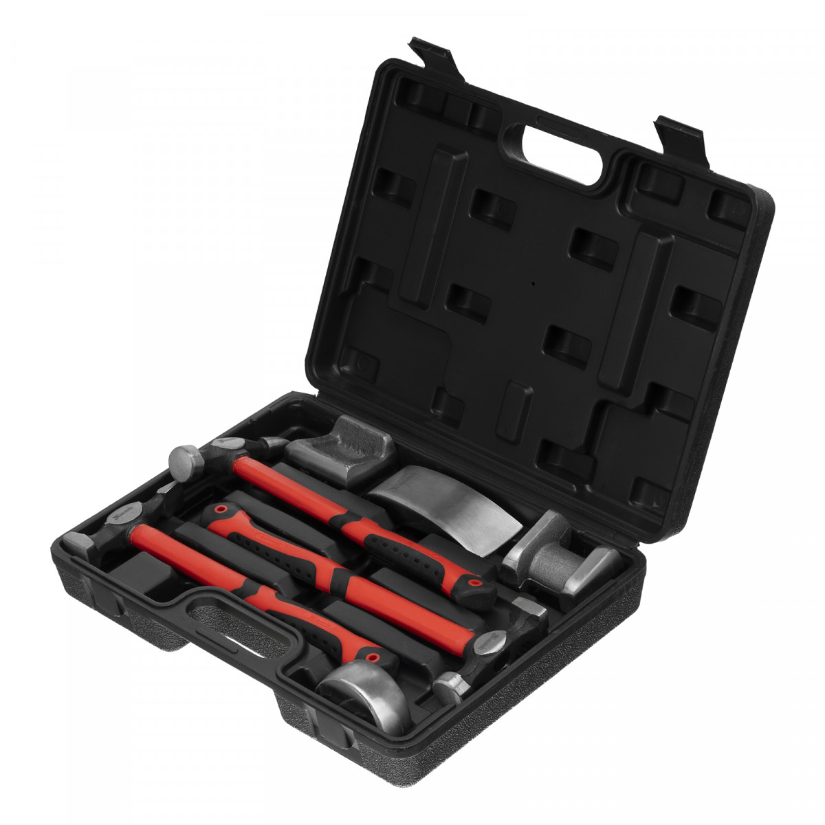 Набор рихтовочный, 3 молотка с фибергласовыми ручками, 4 наковальни, пластиковый бокс Matrix