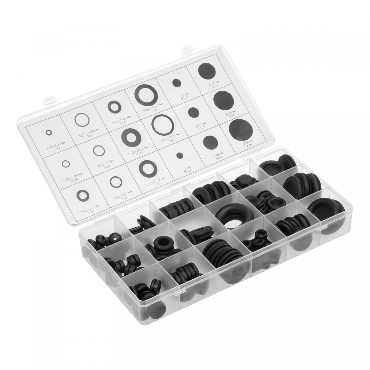 Набор сальников Сибртех 47599 включает 125 предметов диаметром от 6,35 до 25,4 мм, использующихся для уплотнения подвижных соединений различных механизмов. Они пригодятся для обслуживания и ремонта авто- и мототехники.