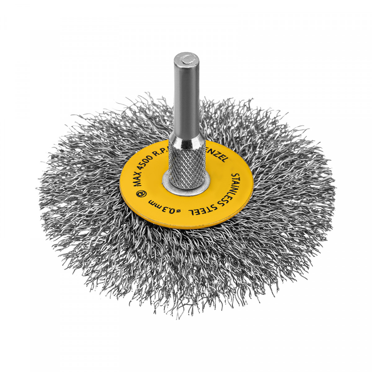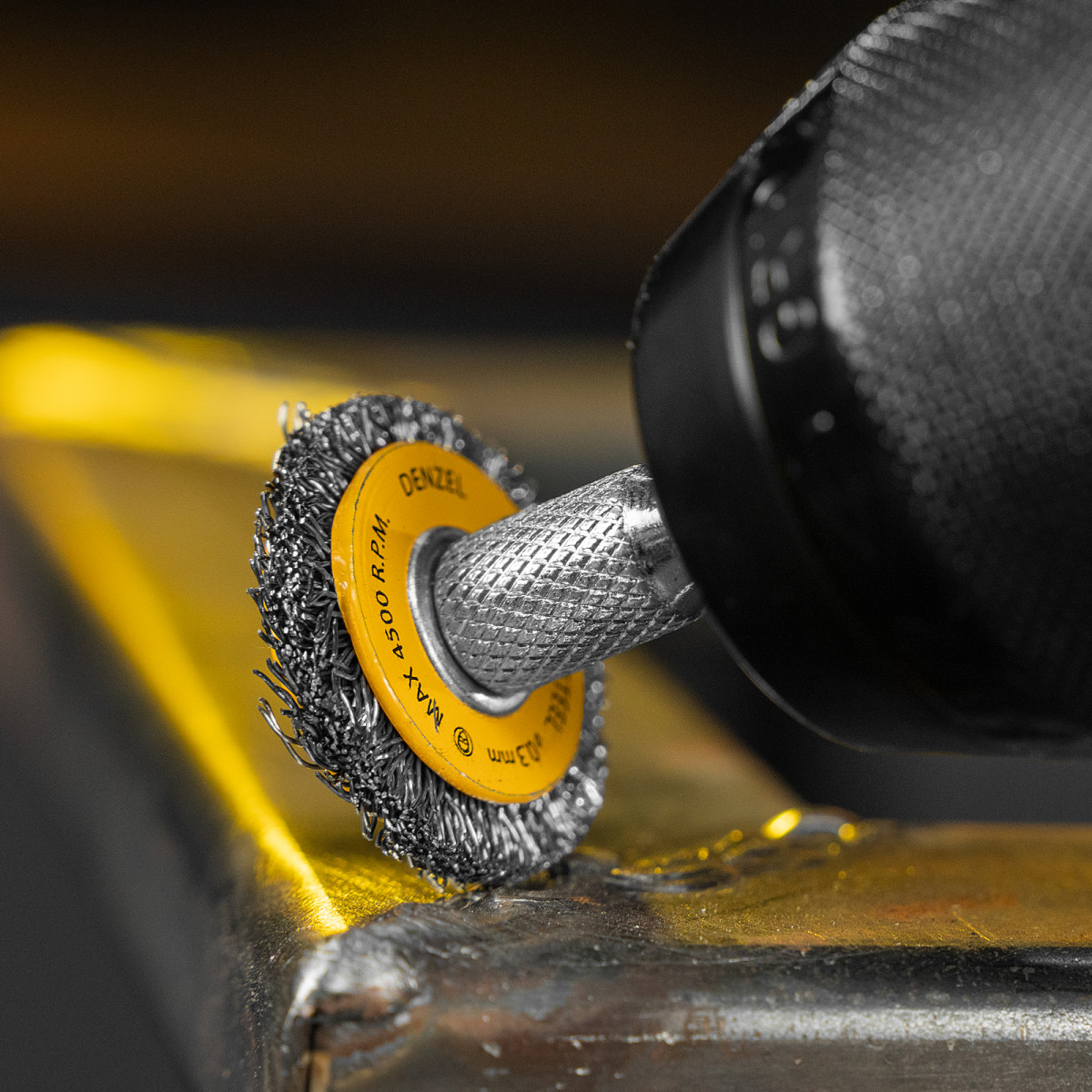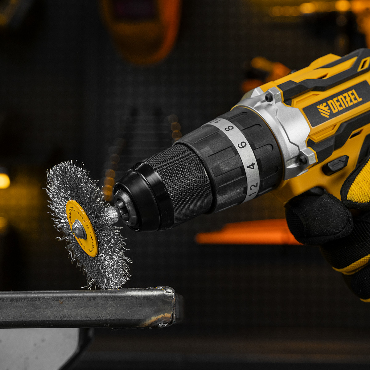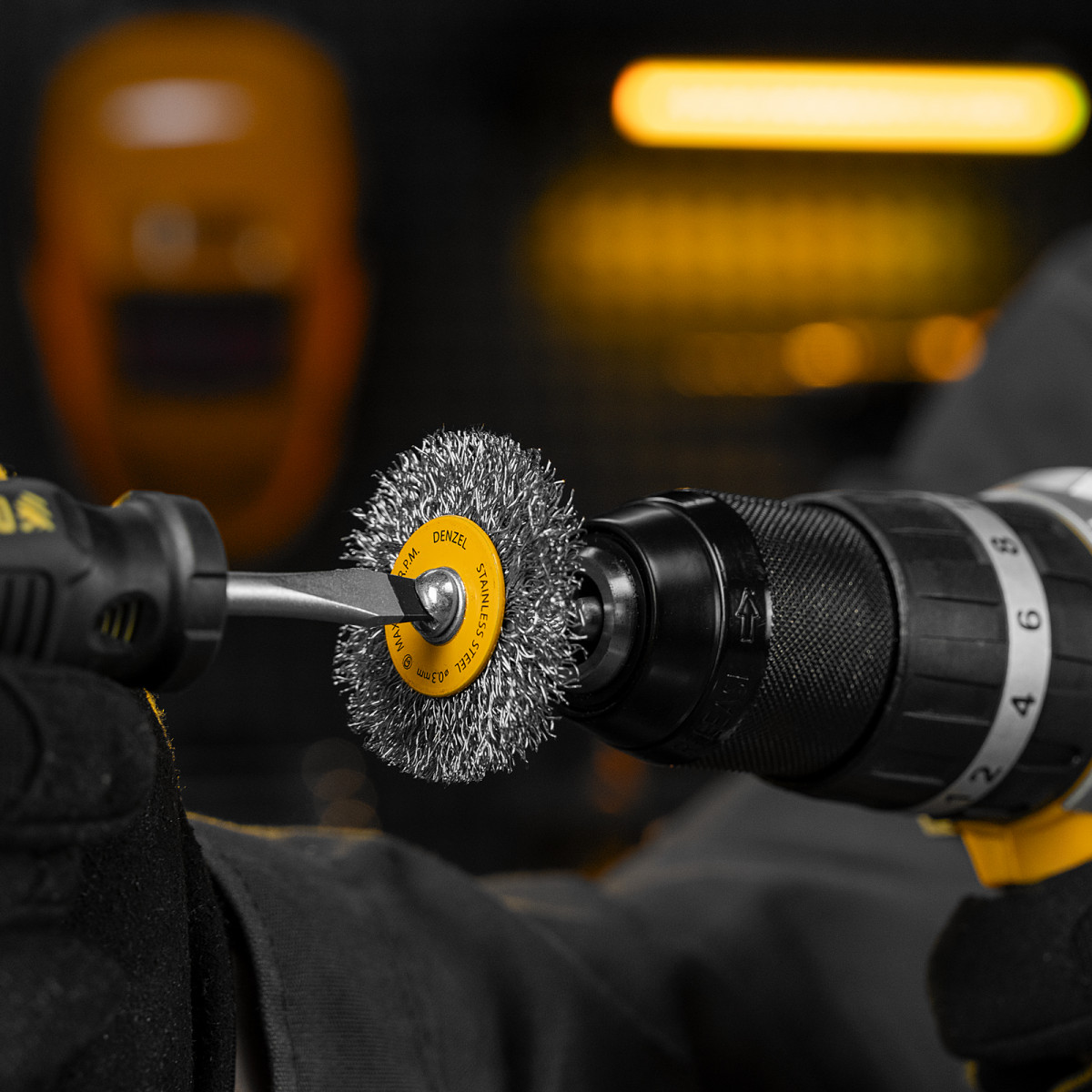 Набор щеток для дрели, 5 Плоских 25-38-50-63-75 мм, шпилька, нерж. вит. проволока Denzel
