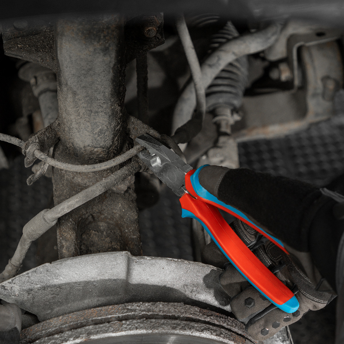 Набор НИЗ «Универсал-2» 13447 в пластиковом боксе включает широкий ассортимент слесарно-шоферских инструментов. С его помощью можно заменить свечи зажигания, осуществить монтаж/демонтаж крепежа, в том числе и в труднодоступных местах, захватить мелкие детали, перекусить проволоку, забить гвозди и т.д.