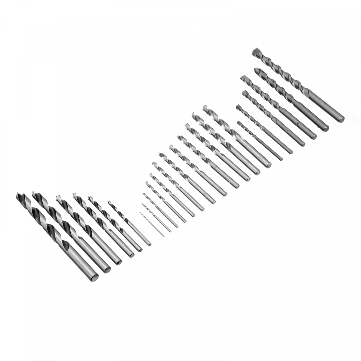 Сверло по металлу 1, 1,5, 2, 2,5, 3, 3,5, 4, 4,2, 4,5, 5, 5,5, 6 - 12 штСверло по бетону 3, 4, 5, 6, 7, 8 - 6 штСверло по дереву 3, 4, 5, 6, 7, 8 - 6 штБита 25 мм PH1, PH2, PH3, PZ1, PZ2, PZ3, SL4, SL5, SL6, TORX15, TORX20, TORX25, TORX27, TORX30, TORX35, HEX3, HEX4, HEX5, HEX6, HEX7 - 30 штГоловка торцевая 5, 6, 7, 8, 10, 11, 12, 13 - 8 штСверло перовое по дереву 16, 20,22 - 3 штСтопорное кольцо 6, 8, 10 - 3 штЗенковка по дереву - 1 штАдаптер для бит с магнитом - 1 штКлюч шестигранный - 1 штПластиковый кейс - 1 шт