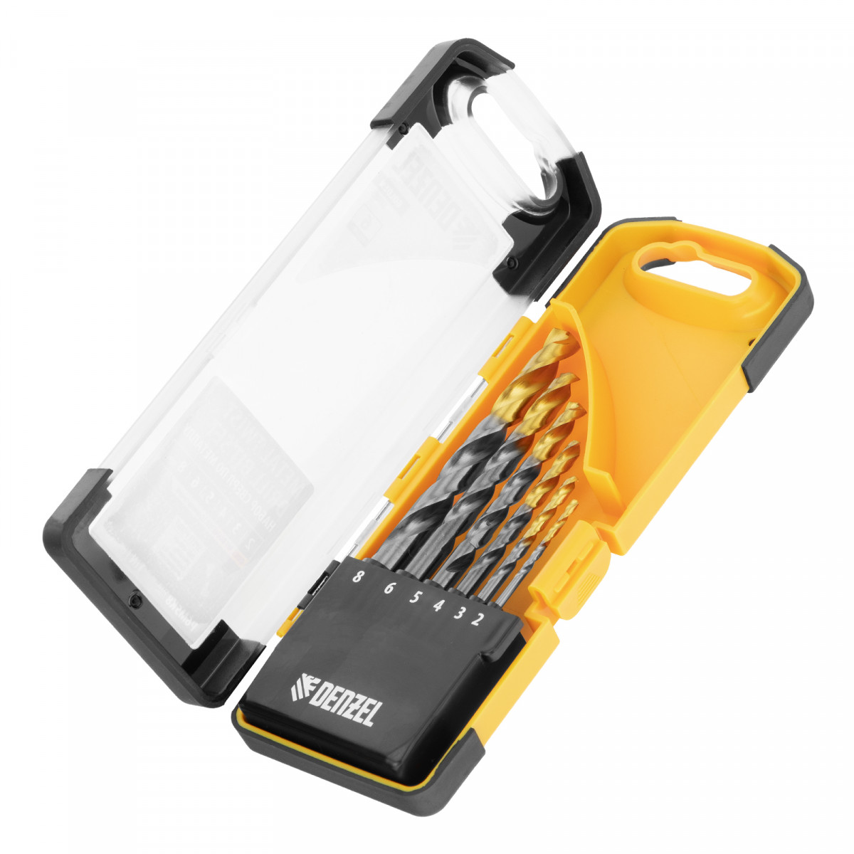 Набор сверл по металлу, 2-8мм, Р6М5К8-TiN, Golden Tip, 6 шт Denzel