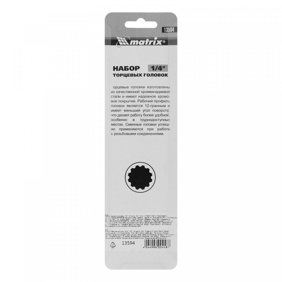 Набор торцевых головок, 1/4", 12 гранные, CrV, 4-13мм, 10 штук Matrix