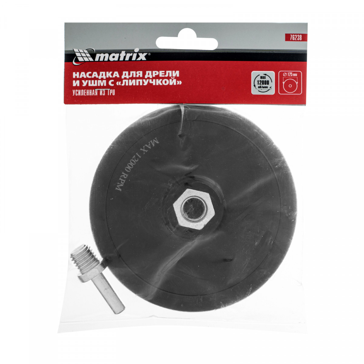 Усиленная насадка для дрели и УШМ Matrix 76238 из TPU, с «липучкой», — опорная тарелка для установки на углошлифовальные машины и дрели, совместимые с оснасткой диаметром 125 мм. Снабжена системой крепления velcro, облегчающей установку и замену абразивных и полировальных дисков на ворсовой подложке. Применяется во время проведения шлифовальных и полировальных работ. Твердая основа из TPU делает насадку оптимальной для черновой обработки.