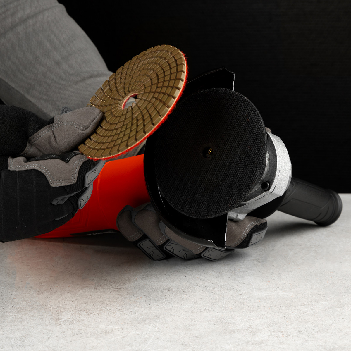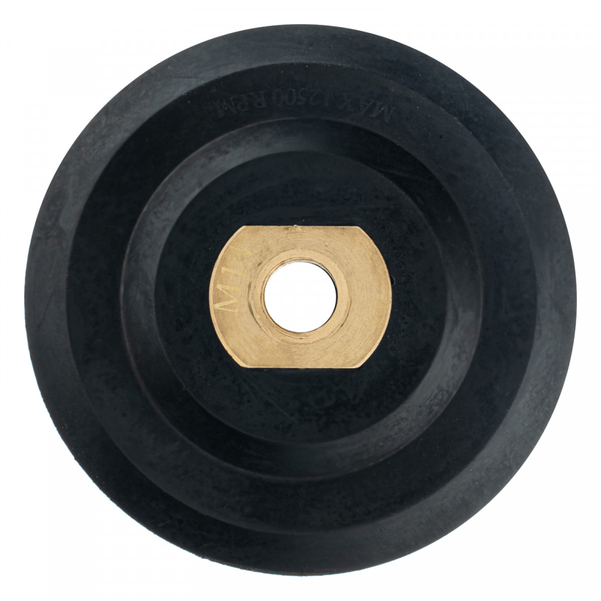 Резиновая насадка для АГШК с «липучкой» Matrix 76227 диаметром 100 мм, с посадочной резьбой М14, — опора для крепления алмазных гибких шлифовальных кругов, или «черепашек». Совместима с углошлифовальными машинами, работающими с частотой вращения до 12500 об/мин. Изготовлена из прочной резины, обеспечивает хороший контакт шлифкруга с обрабатываемой поверхностью. Насадка применяется для шлифовки и полировки каменных, гранитных, мраморных и керамогранитных поверхностей.