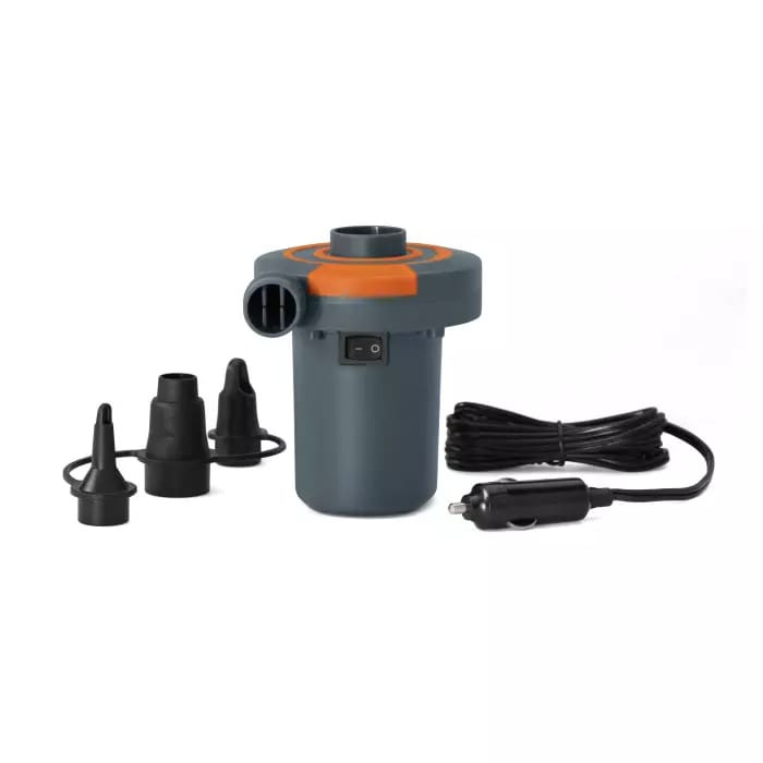 Электрический насос с подключением от сети бортового питания автомобиля (от прикуривателя). Насос может работать как в режиме надувания, так и сдувания. В комплекте с насосом провод к прикуривателю (длина 180 см) и три универсальные насадки для практически всех видов надувных изделий.