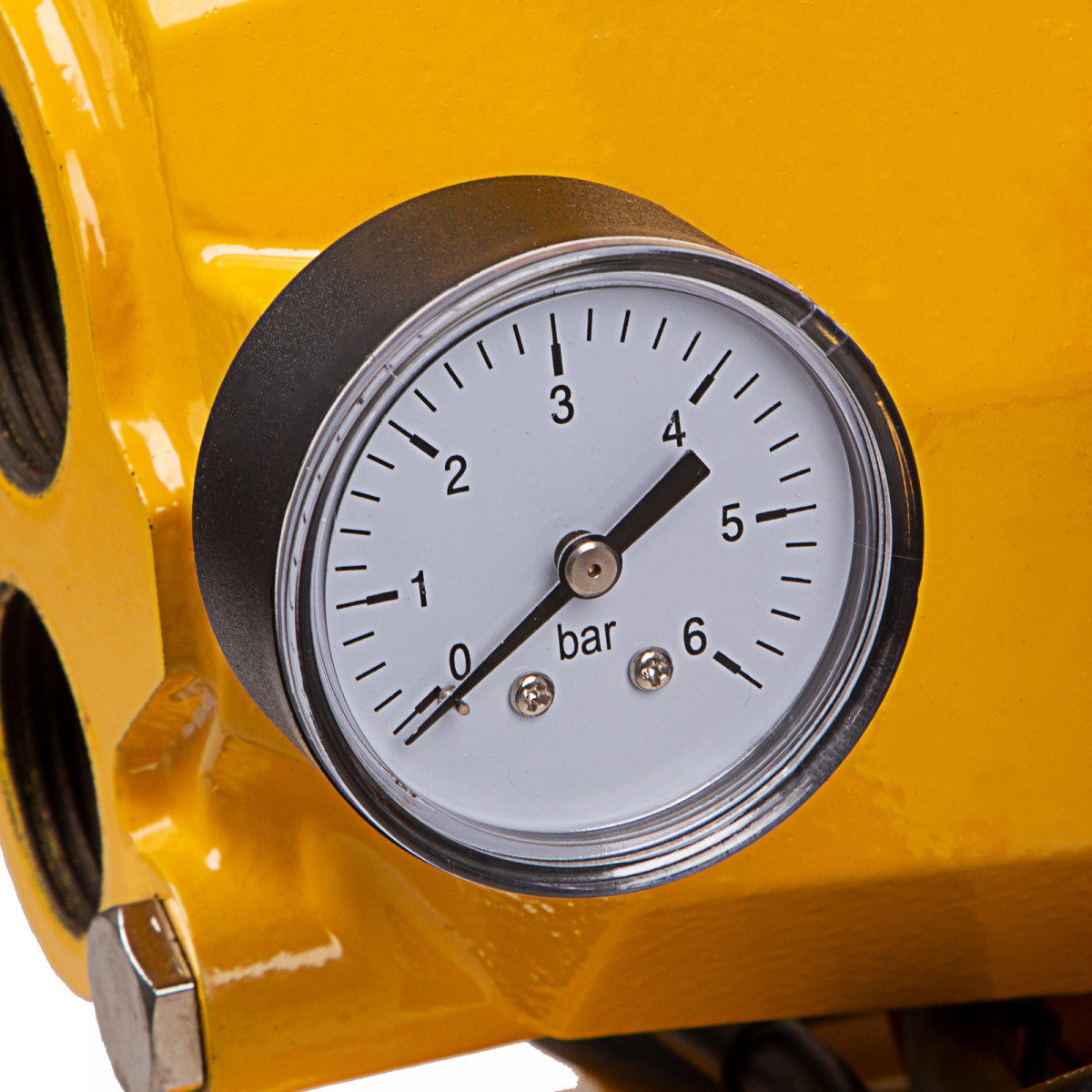 - Автоматический контроль работы — реле регулирует работу насоса в диапазоне 1,5–3 бар, отключая двигатель при превышении и запуская при понижении давления, это позволяет защитить ресивер от поломок.