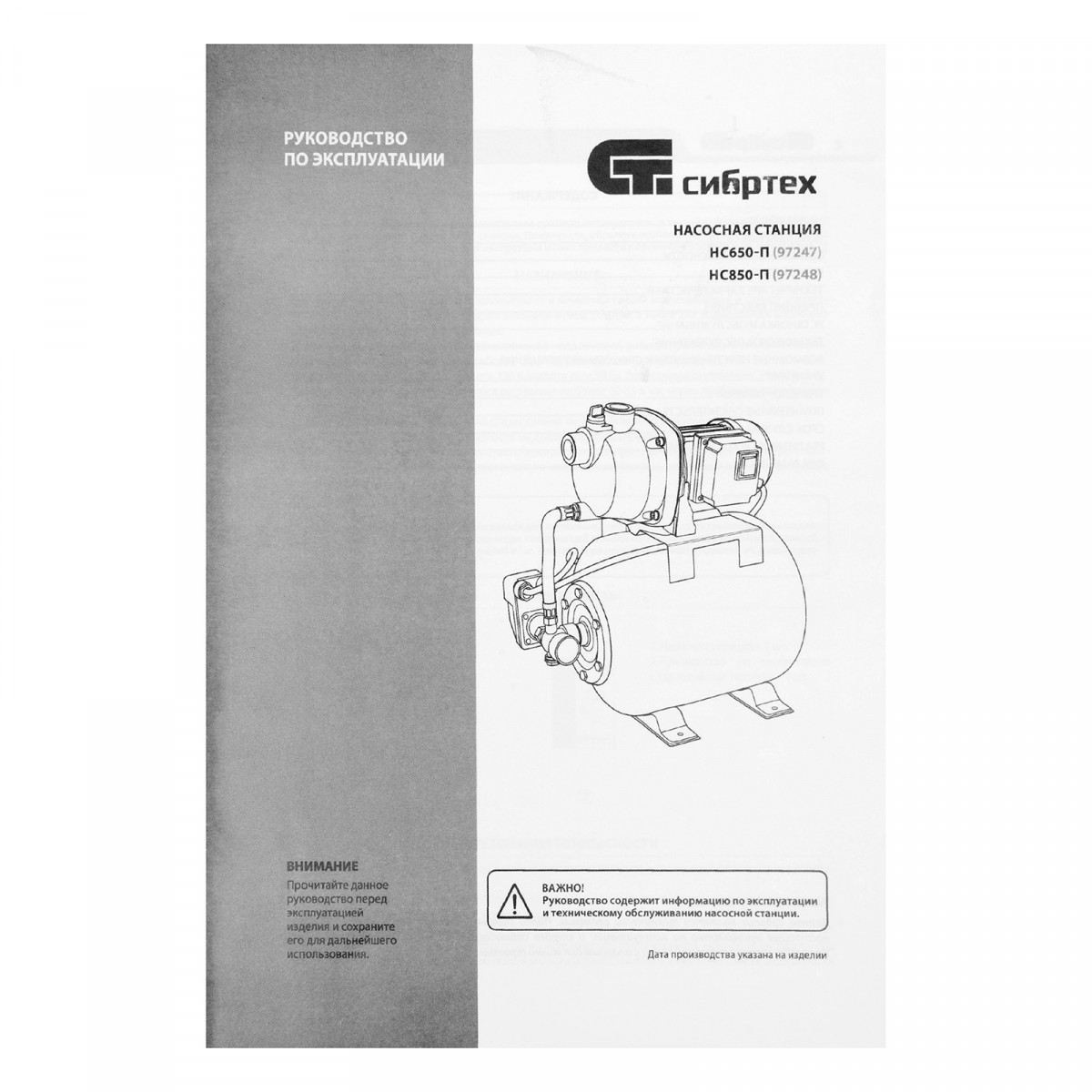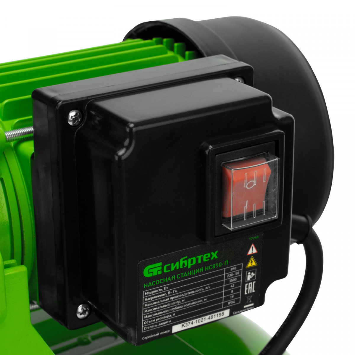 Насосная станция Сибртех НС850-П 97248 мощностью 850 Вт, с ресивером на 19 л, работает со скоростью 3500 л/ч и обеспечивает напор до 42 м. Используется для обеспечения подачи воды в загородных домах, поддержания давления в системе водоснабжения квартир. Однофазный мотор обеспечивает производительность на уровне 58 л/мин под давлением не более 2,8 бар.,Станция работает в автоматическом режиме: накапливает воду в ресивере и включается по мере ее потребления. Подача воды также происходит экономно: она поступает к сантехническому оборудованию и кранам только в момент их включения. Пробка заливной горловины легко откручивается, поэтому подготовить насосную станцию к первому запуску не составит труда.