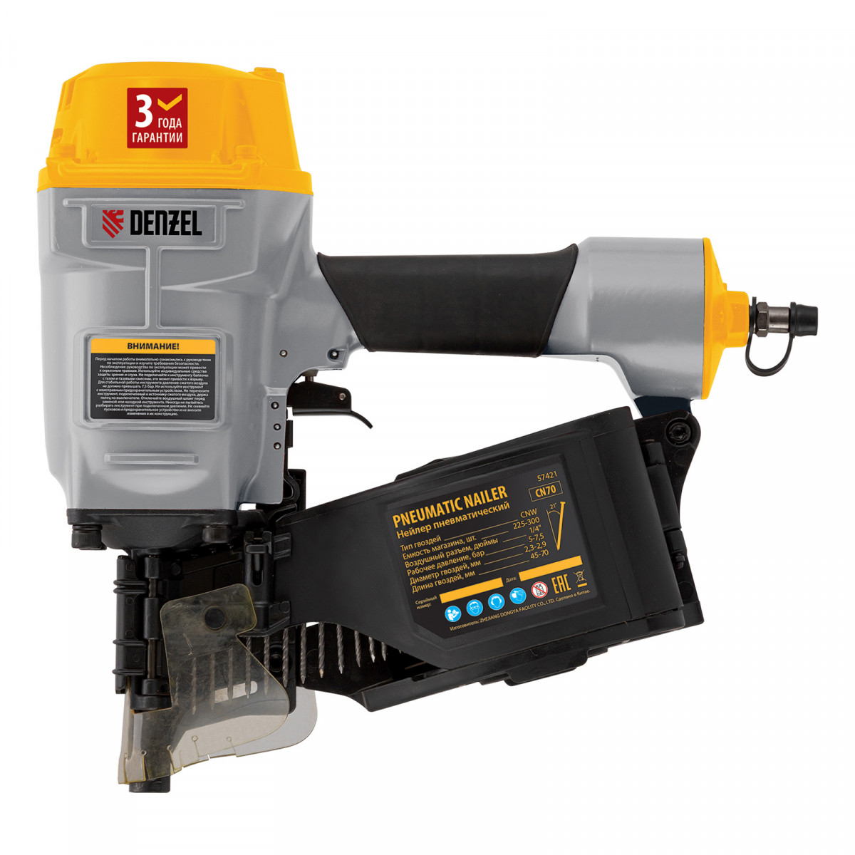 Нейлер пневматический CN70 для гвоздей CNW от 45 до 70 мм// Denzel