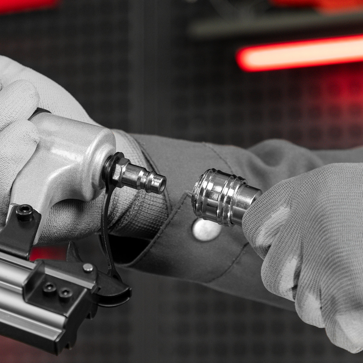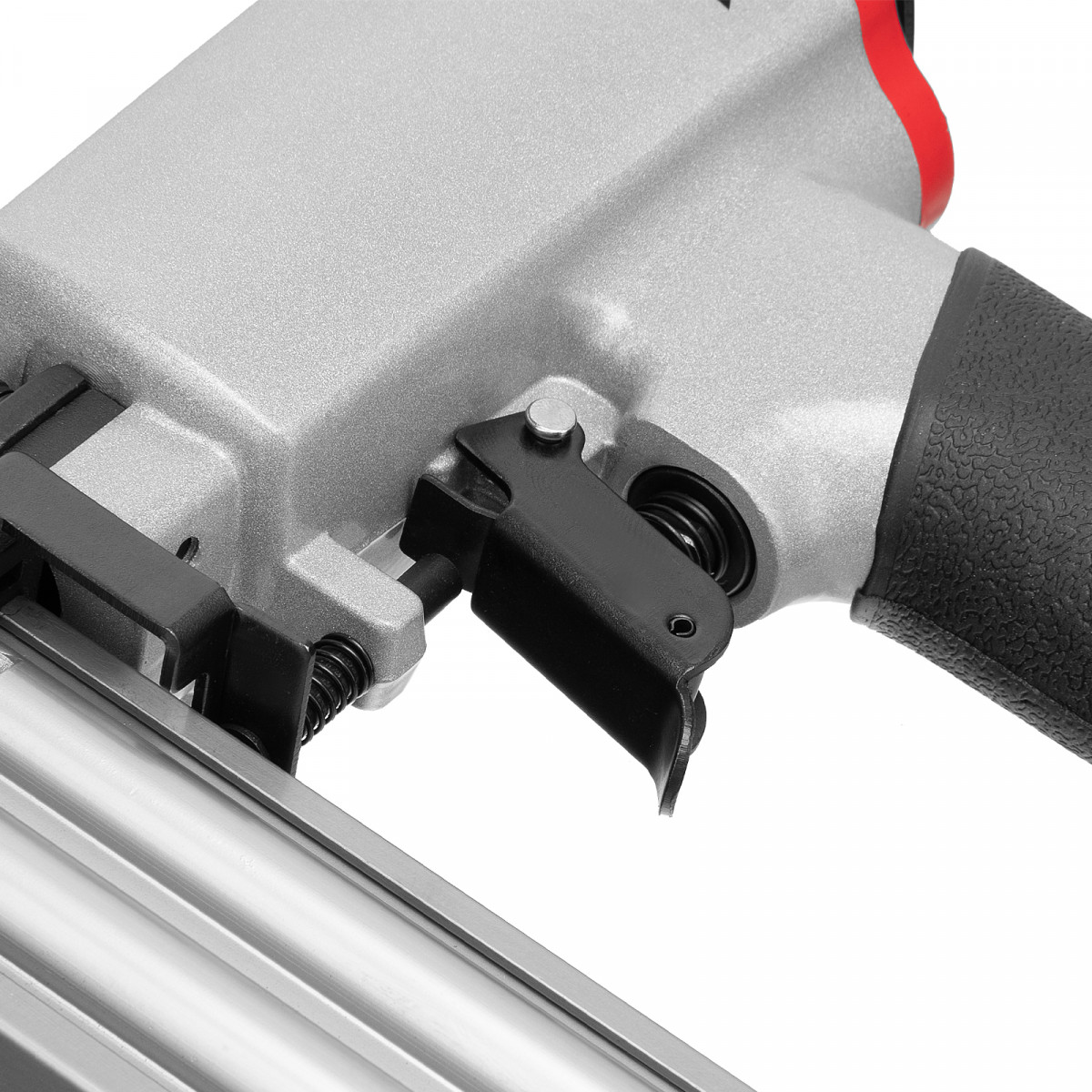 Пневматический нейлер Matrix 57405 предназначен для гвоздей 18GA длиной от 10 до 32 мм. Применяется во время строительства и ремонта, кровельных работ и производства мебели. С помощью нейлера можно закрепить паркетную доску, фанеру, ДВП, шифер, гипсокартон, ткань и бумагу.