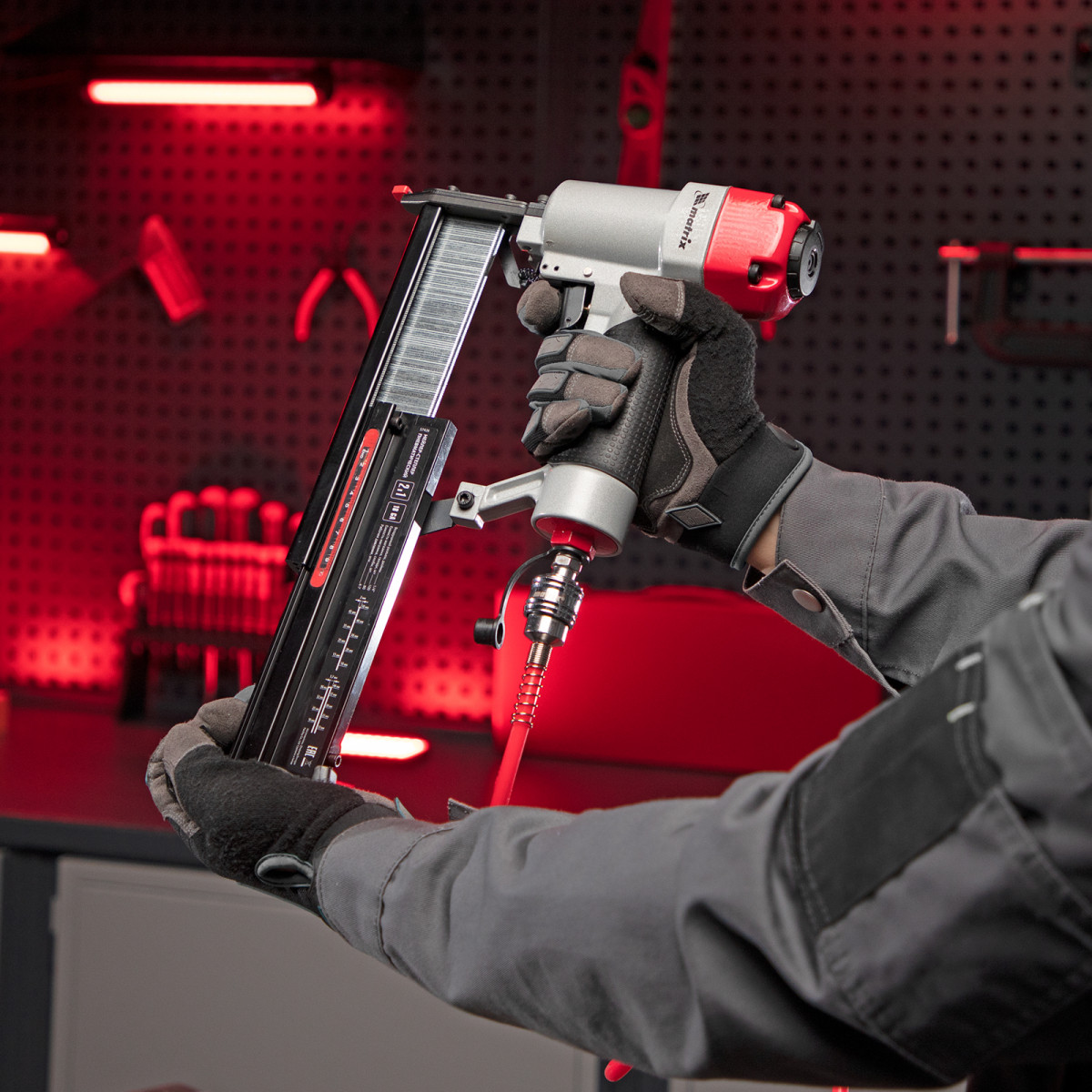 • Безопасность — специальный предохранитель не допускает случайного срабатывания нейлера-степлера.