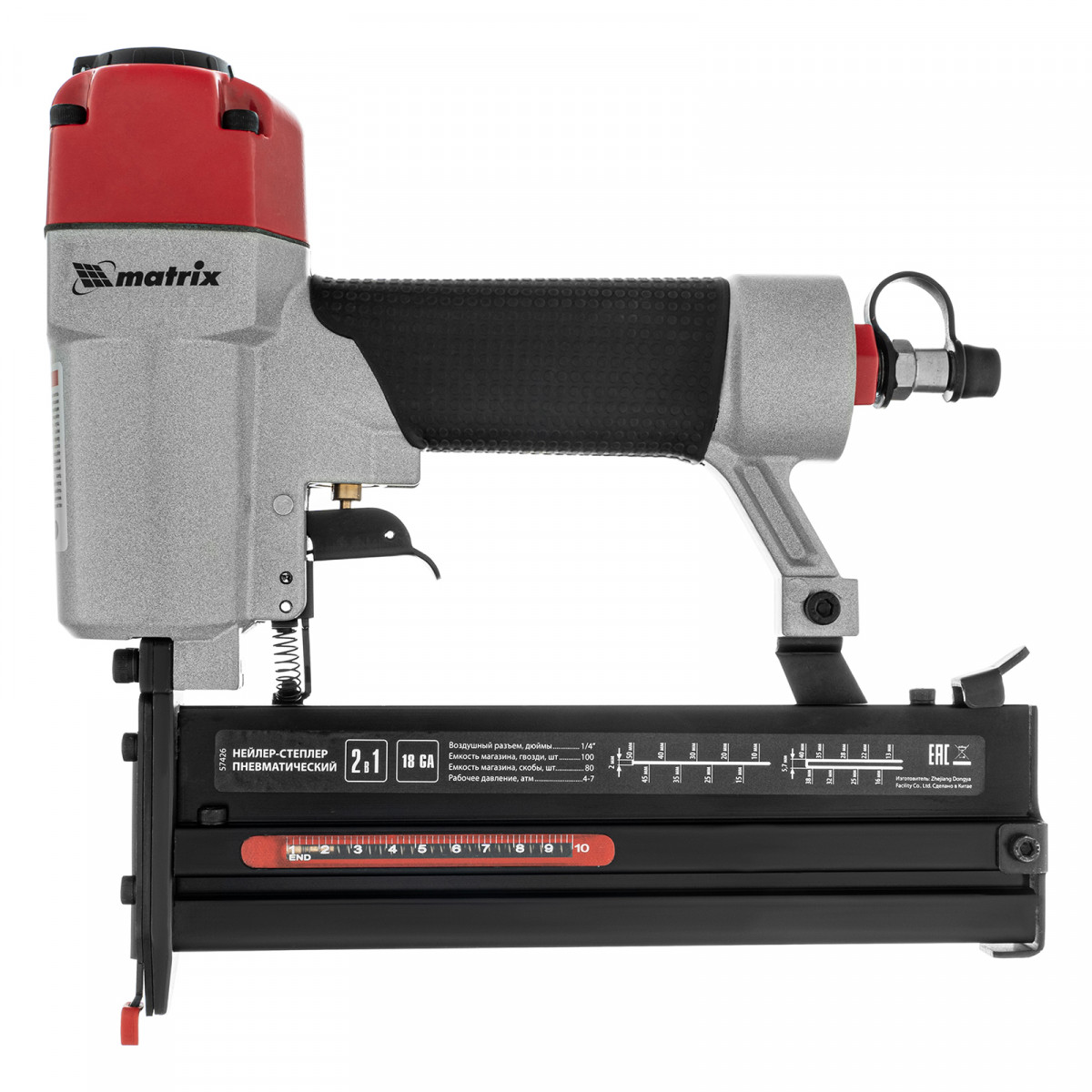 Нейлер-степлер пневматический 2 в 1, гвозди 18GA длина 10-50 мм, скобы 18GA длина 25-40 мм Matrix
