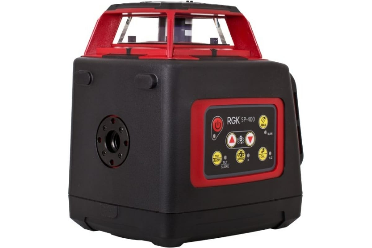 Лазерный ротационный нивелир имеет режим работы с приемником, при котором рабочая дальность достигает 200 метров. Наличие лазерного отвеса позволяет установить прибор над определенной точкой, а также осуществлять перенос точек по вертикали. Благодаря функции наклонного луча можно задать плоскости любой угол наклона, что обеспечит удобство при работе на наклонных поверхностях. Корпус нивелира оснащен двумя разъемами под штатив 5/8" для размещения либо горизонтально, либо вертикально.Особенности