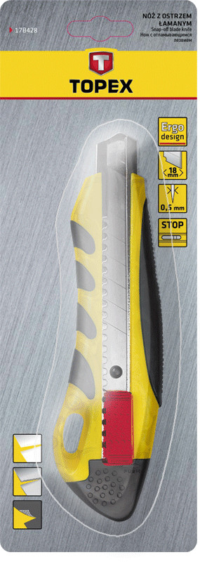 Нож 18 мм с выдвижными лезвием пластмассовый антискользящий корп TOPEX