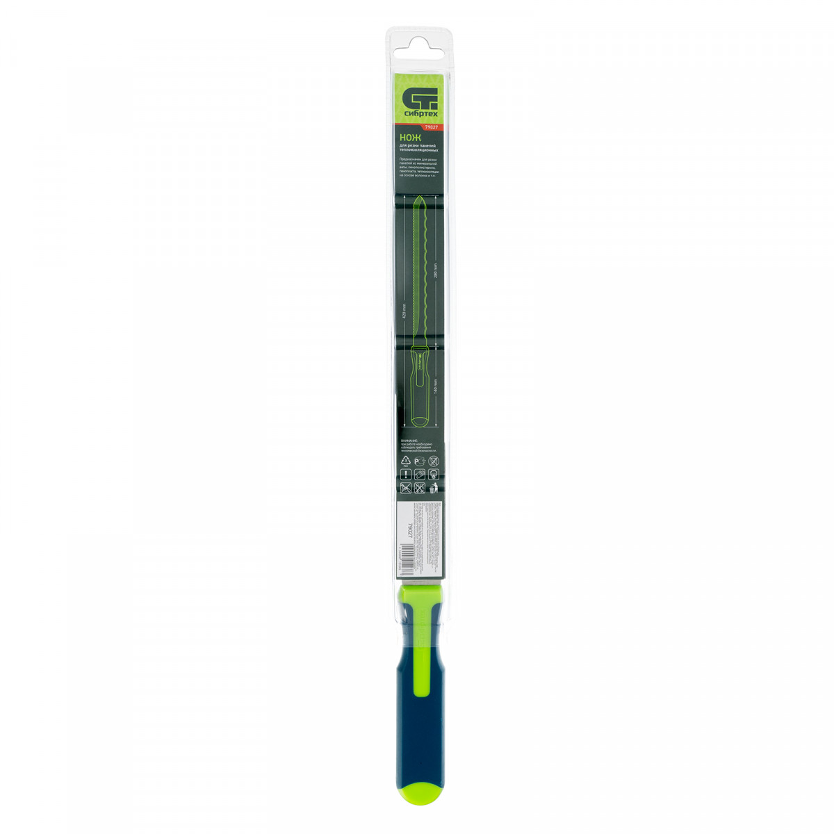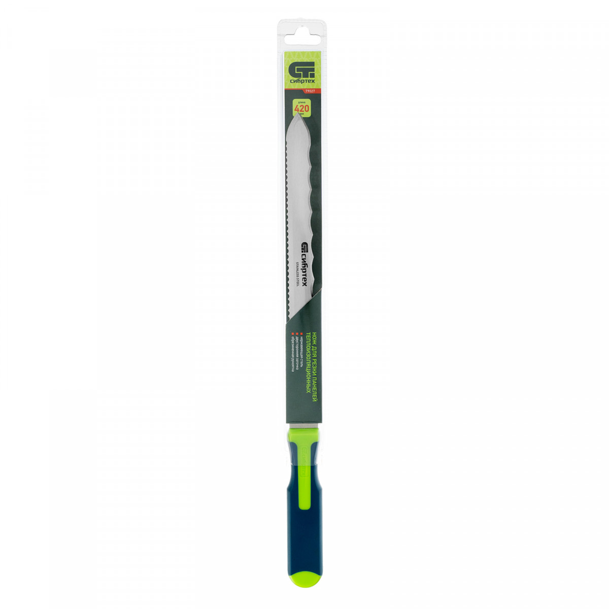 Нож для резки теплоизоляционных панелей, 2-стороннее лезвие, обрезиненная рукоятка, 420 мм, лезвие 280 мм Сибртех