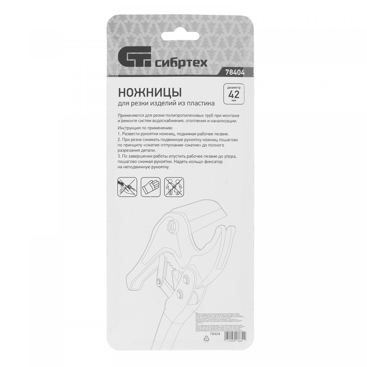 Ножницы Сибртех 78404 с порошковым покрытием — инструмент для резки изделий из пластика диаметром до 42 мм. Храповой механизм повышает эффективность реза, экономя силы мастера. Ножницы используются для бытовых работ с трубопроводными системами.