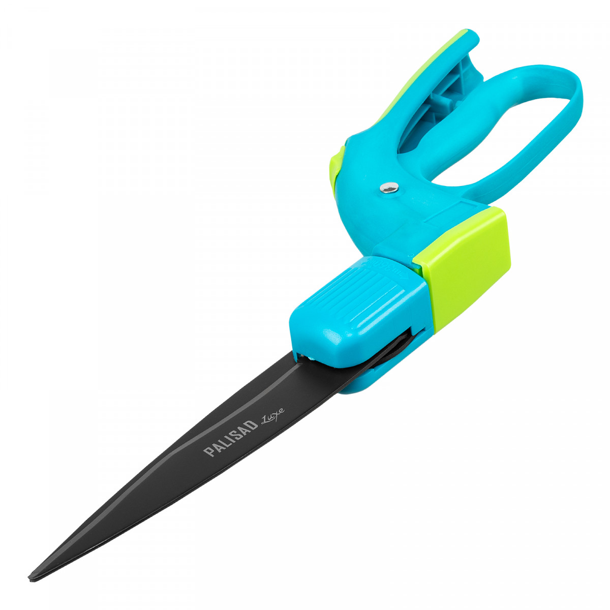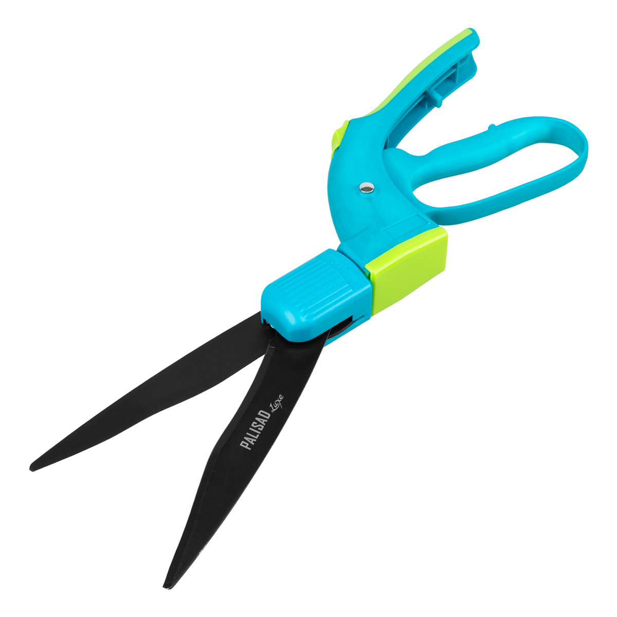 Ножницы газонные Palisad LUXE 608635 длиной 365 мм, с пластиковыми обрезиненными рукоятками, — инструмент для подстригания травы вдоль кромок газонов, дорожек, бордюров, ограждений, а также возле кустов. Поворотные на 180° лезвия облегчают работу в труднодоступных местах. Гарда на нижней рукоятке защищает пальцы от царапин, проколов и ссадин. Механизм автооткрывания препятствует заеданию лезвий при стрижке жесткой травы. Ножницы помогут привести в порядок дачный участок или придомовую территорию.