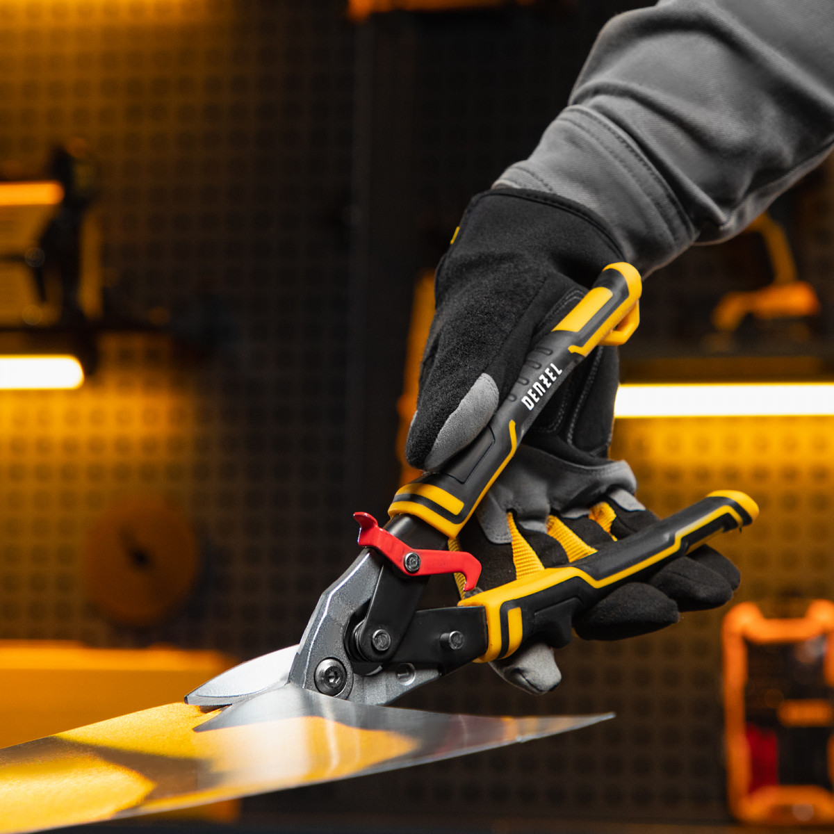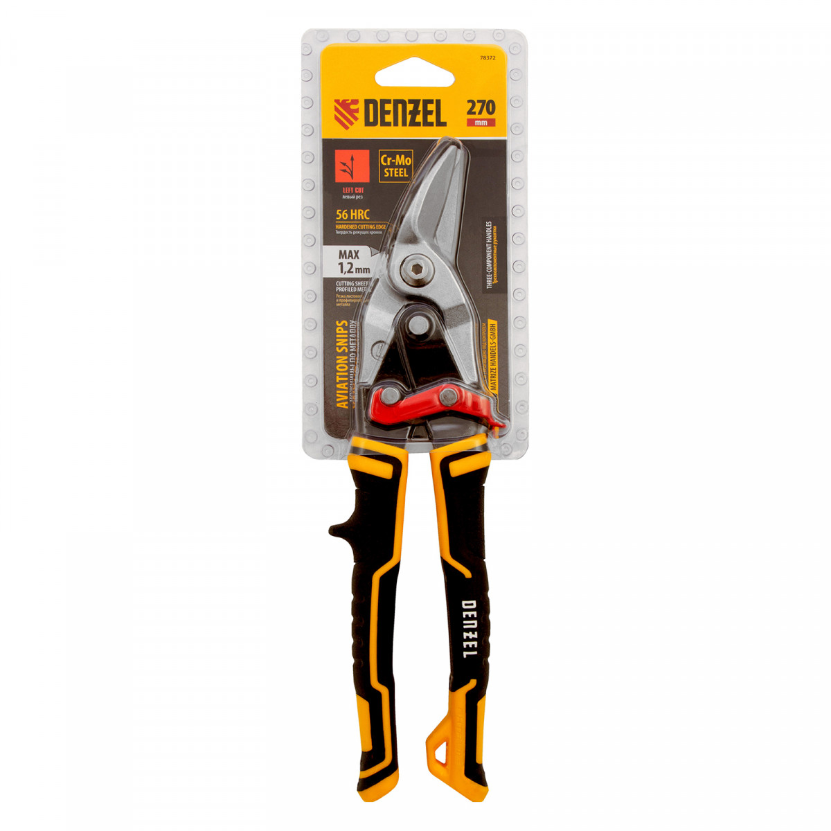 Ножницы по металлу, 270 мм, прямой и левый рез, сталь-СrMo, трехкомпонентные рукоятки Denzel