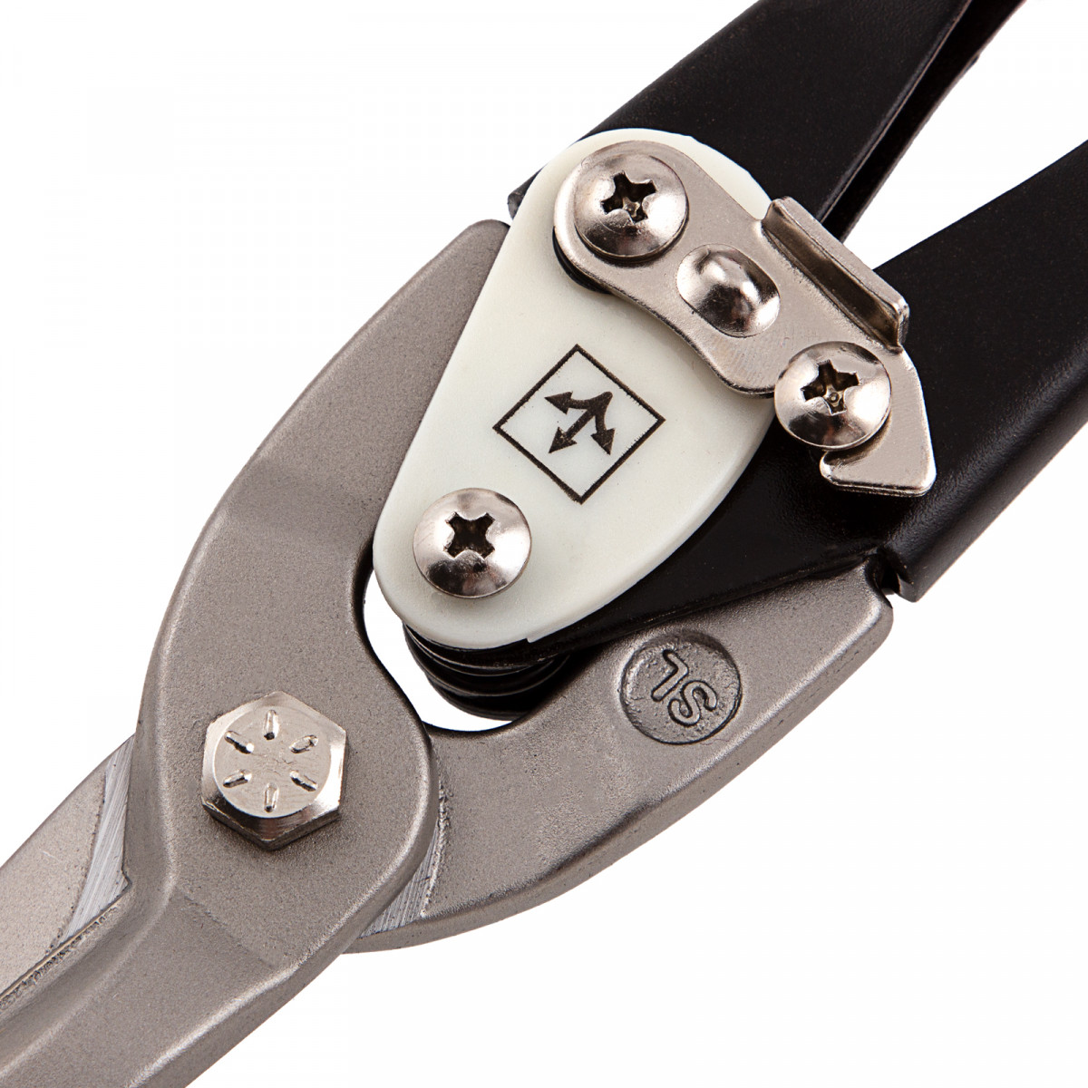 Удлиненные ножницы по металлу Matrix PRO 78328 длиной 290 мм, из стали CrMo, с двухкомпонентными обрезиненными рукоятками, предназначены для прямого реза листовых и профильных металлических заготовок, в том числе стали толщиной до 1,2 мм и «нержавейки» толщиной до 0,7 мм. Двойной рычажный механизм позволяет передавать значительное усилие, облегчая резку материала большой толщины. Для удобства работы на корпусе имеется маркировка с указанием направления резания. Ножницы будут полезны в профессиональной и домашней мастерской.