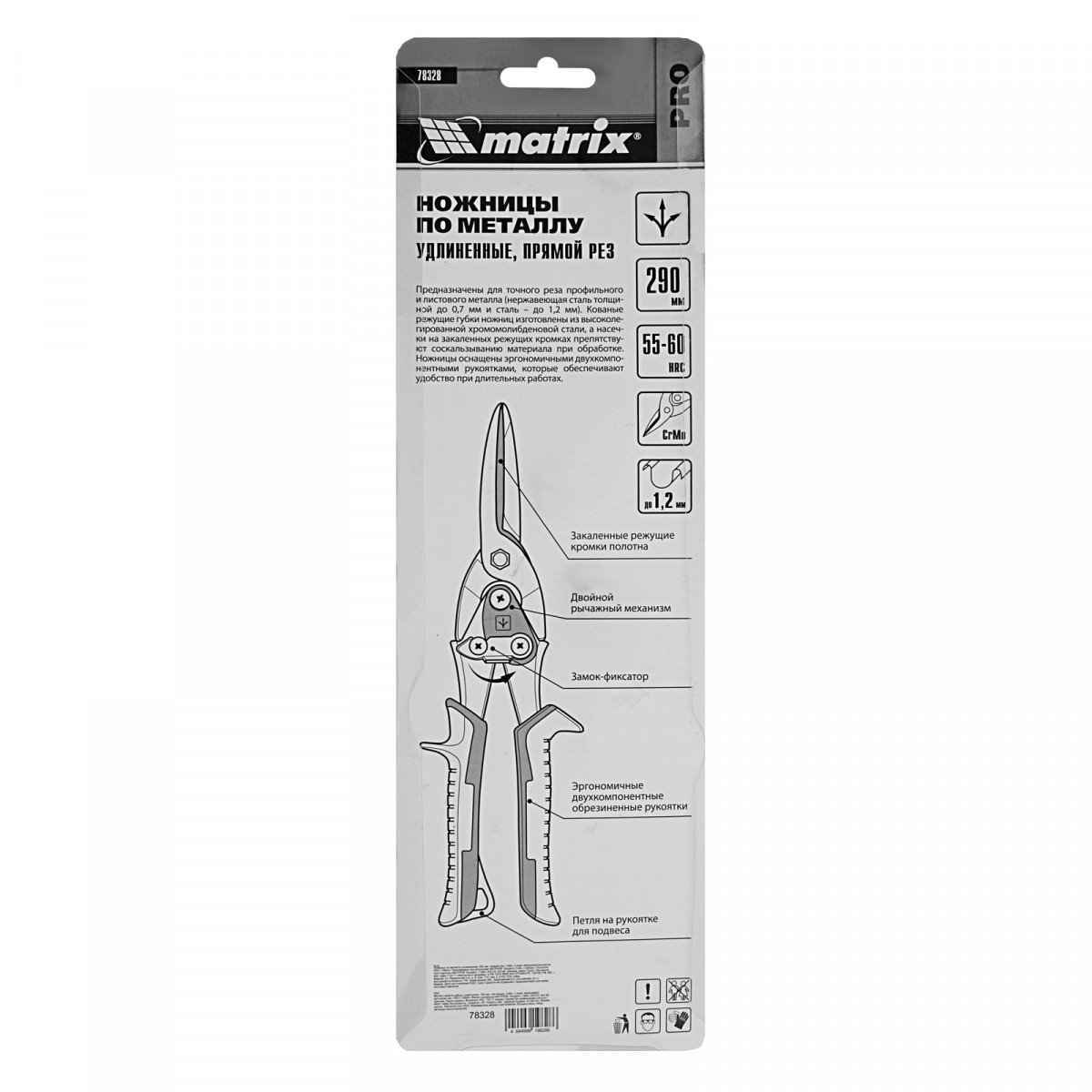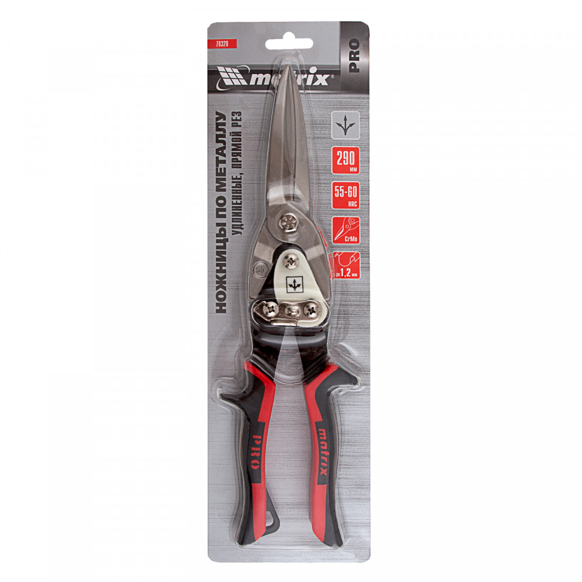 Ножницы по металлу, удлиненные, 290 мм, прямой рез, CrMo, двухкомпонентные обрезиненные рукоятки, PRO Matrix