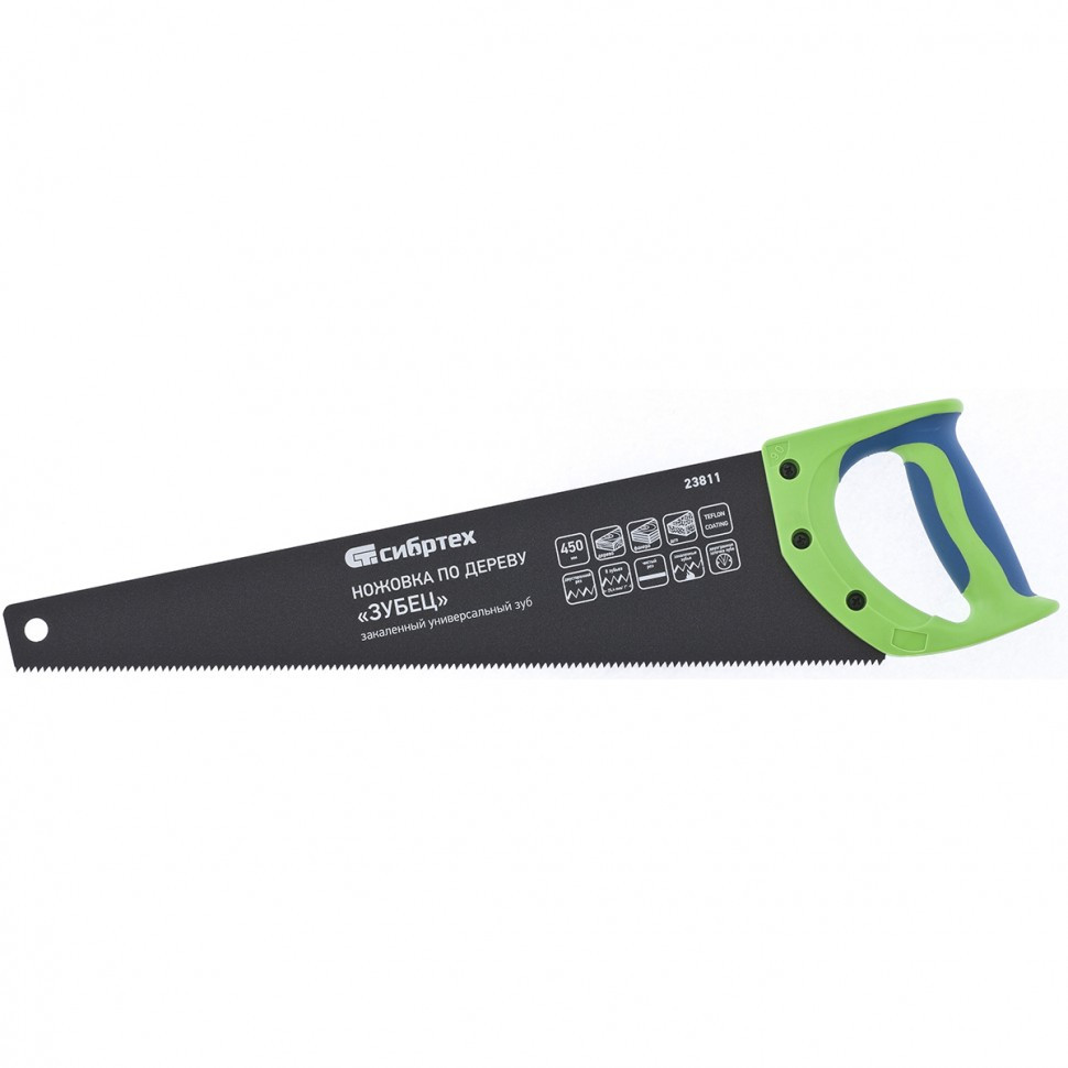 Ножовка по дереву "Зубец", 450 мм, 7-8 TPI, каленый зуб 2D, защитное покрытие, двухкомпонентная рукоятка Сибртех