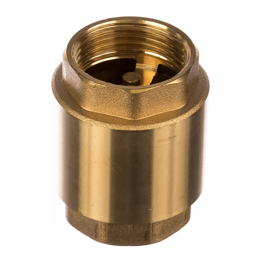 Обратный клапан используют с насосами и насосными станциями. Он предотвращает незапланированный слив воды из системы водоснабжения, например, при остановке насоса. Клапан имеет внутреннюю резьбу размером 1". Корпус клапана и сам клапан выполнены из латуни. Приспособление имеет длительный срок эксплуатации.