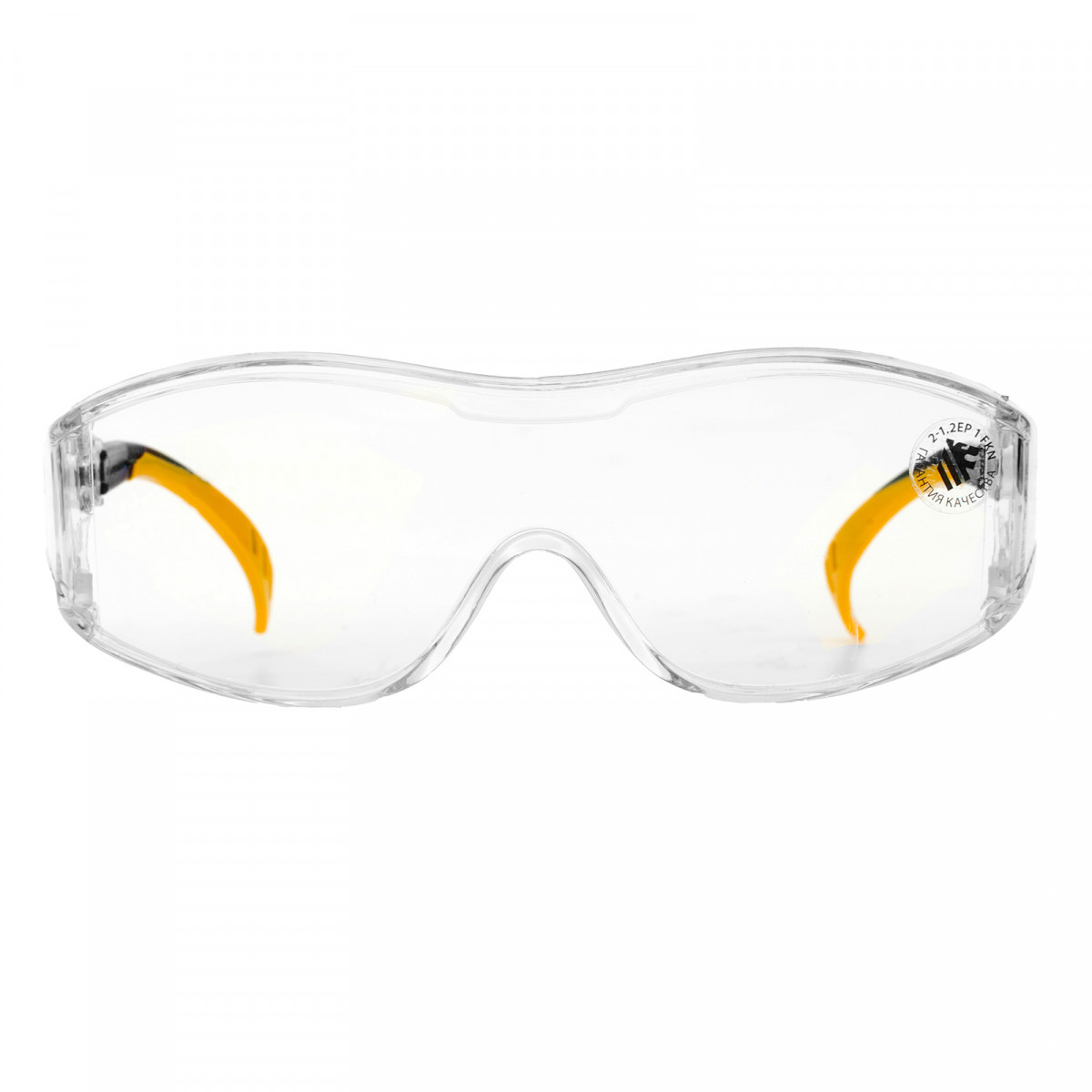 • Продуманная конструкция — особая форма линз обеспечивает боковую и надбровную защиту, а также позволяет носить защитные очки вместе с коррригирующими.