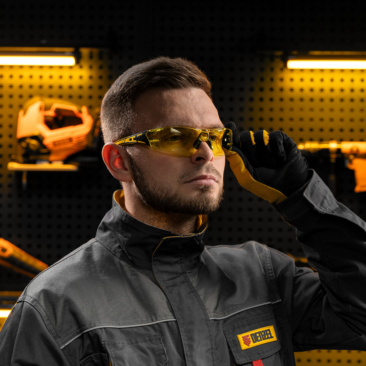Легкие универсальные защитные очки открытого типа Denzel 89192 с поликарбонатными желтыми линзами и 2-компонентными дужками предназначены для защиты глаз от механических повреждений и УФ-излучения. Очкам присвоен класс механической прочности F, они обеспечивают защиту от высокоскоростных частиц с низкоэнергетическим ударом V=45 м/с. Очки используются во время работы с электро- и бензоинструментом, на производстве и в быту.