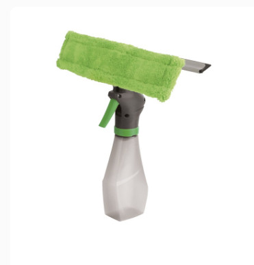 Многофункциональная стекломойка «3 в 1», состоит из водосгона, насадки из микрофибры и дозатора для жидкости. Насадка из микрофибры легко снимается и стирается в стиральной машине при температуре не больше 60°C.