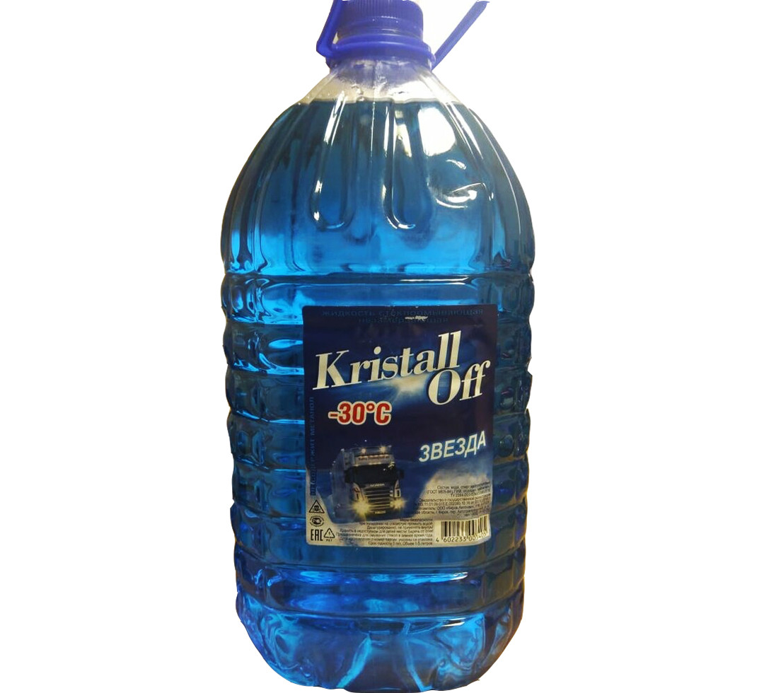 Незамерзающая жидкость Kristall Off "Звезда" - 30, без запаха и спирта! Не содержит запрещенного метилового спирта, тем самым не приносит ни какого вреда для здоровья! Легко удаляет масляную пленку! Сертифицирована!