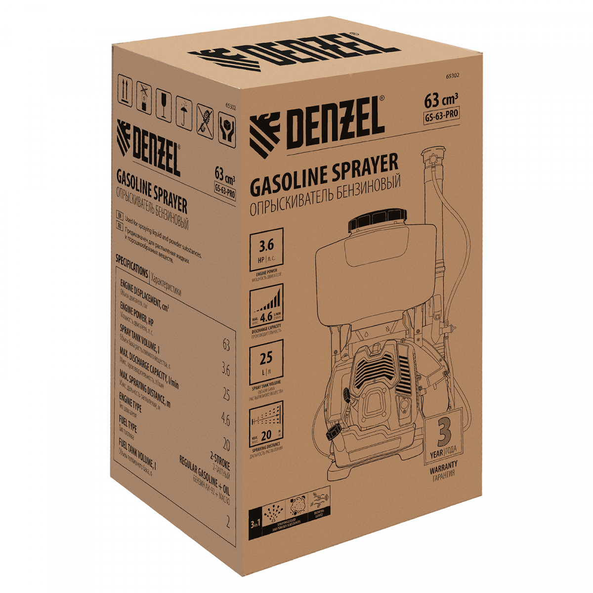 Опрыскиватель бензиновый GS-63-PRO, 63 см3, бак 25 л Denzel