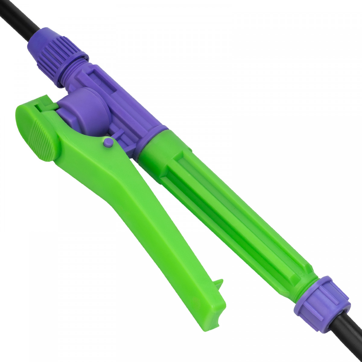 • Удобная обработка участков большой площади — благодаря фиксатору курка опрыскиватель может работать в режиме непрерывного полива.