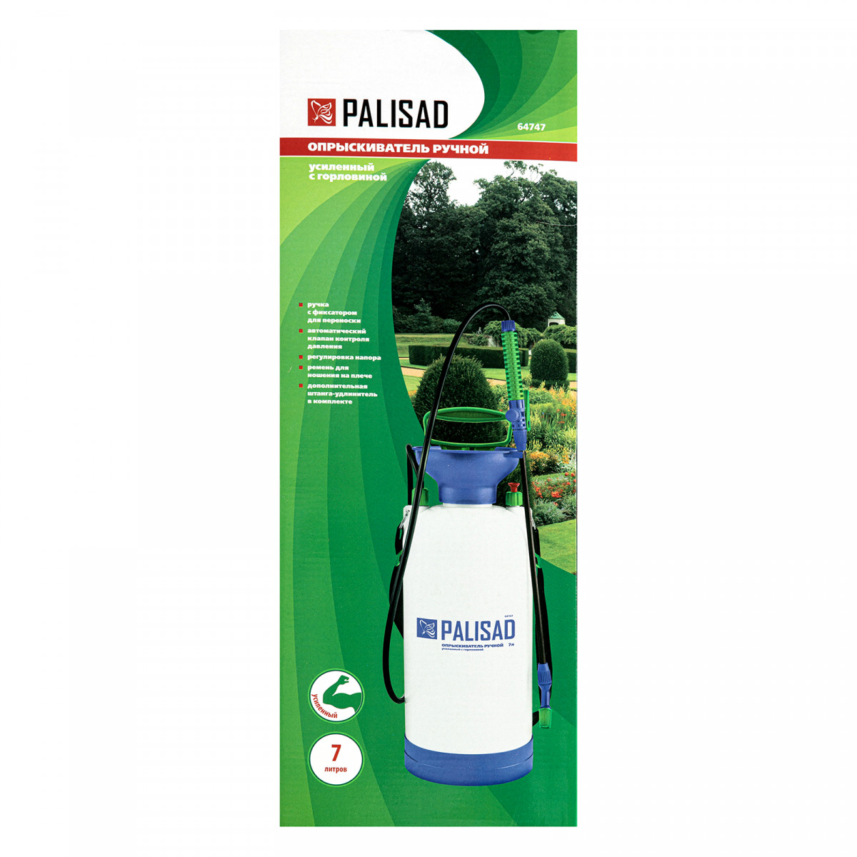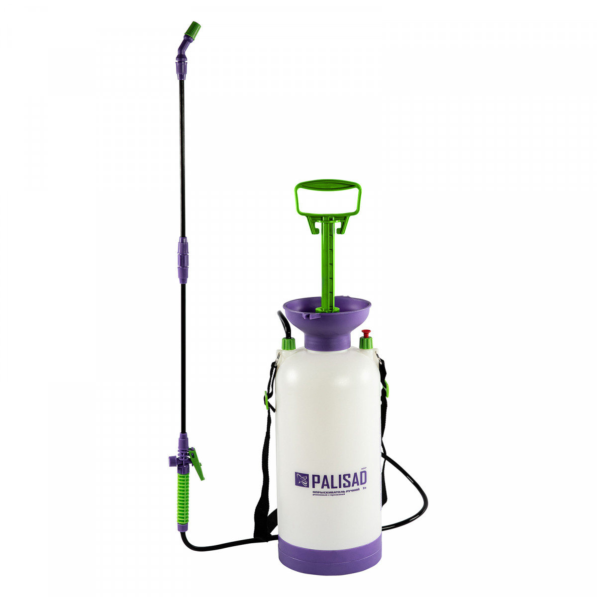 Опрыскиватель ручной усиленный с горловиной 7 л, с насосом, шлангом и разбрызгивателем Palisad