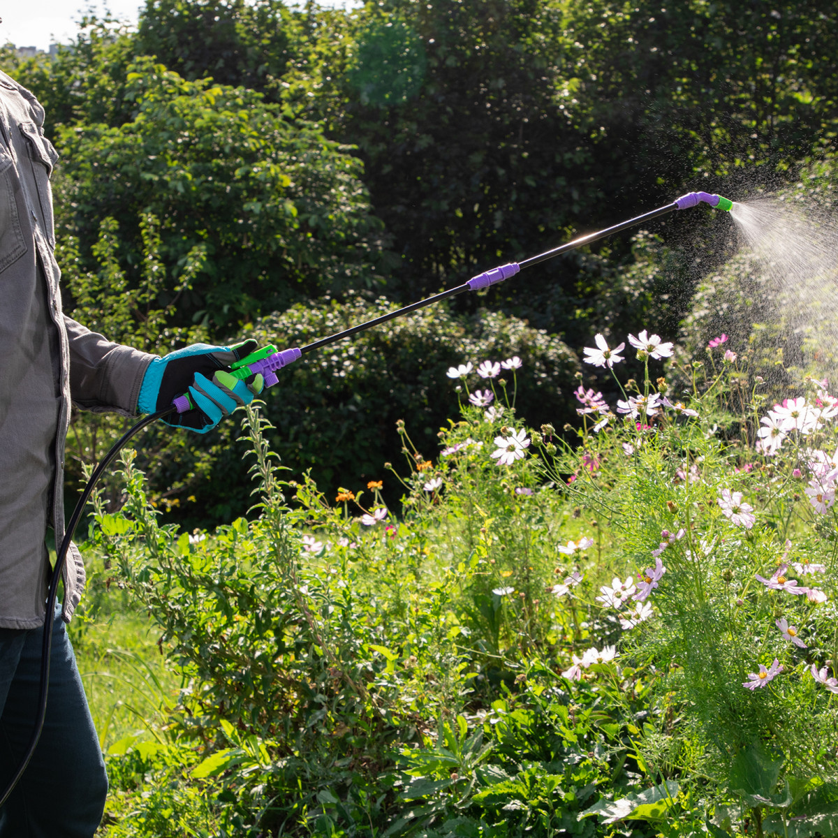 - Контроль подачи жидкости — опрыскиватель оснащен регулируемой распыляющей головкой.