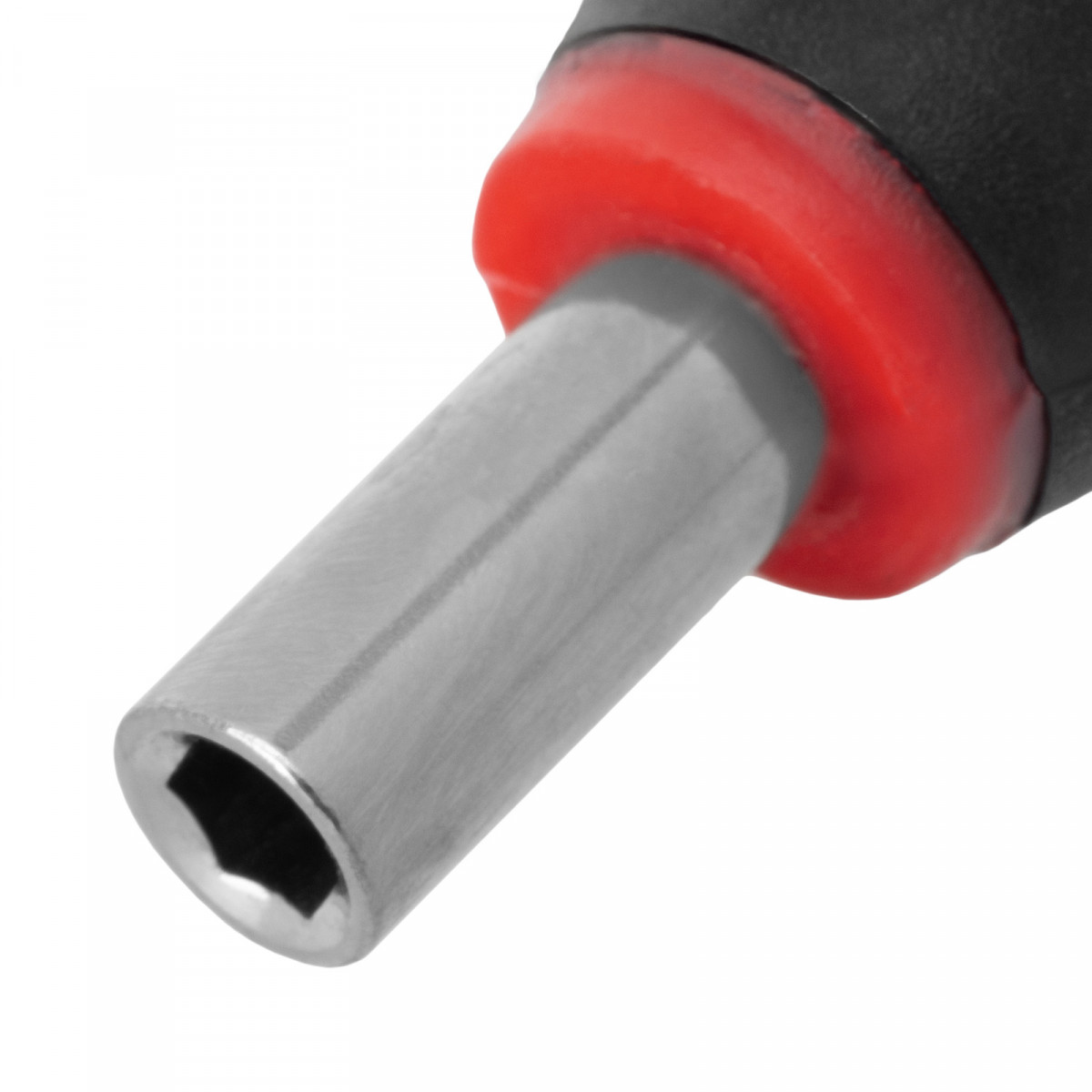 • Мощный магнит на присоединительном шестиграннике гарантирует надежность удержания бит.