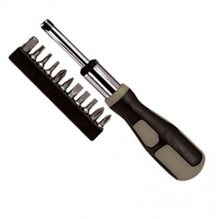 Отвертка реверсивная предназначена для монтажа и демонтажа резьбовых соединений. Позволяет заворачивать и отворачивать крепеж без перехватывания ручки. Имеет двухкомпонентную антискользящую рукоятку эргономичной формы, оснащена набором сменных бит самых распространенных профилей, изготовлена из хромванадиевой стали.