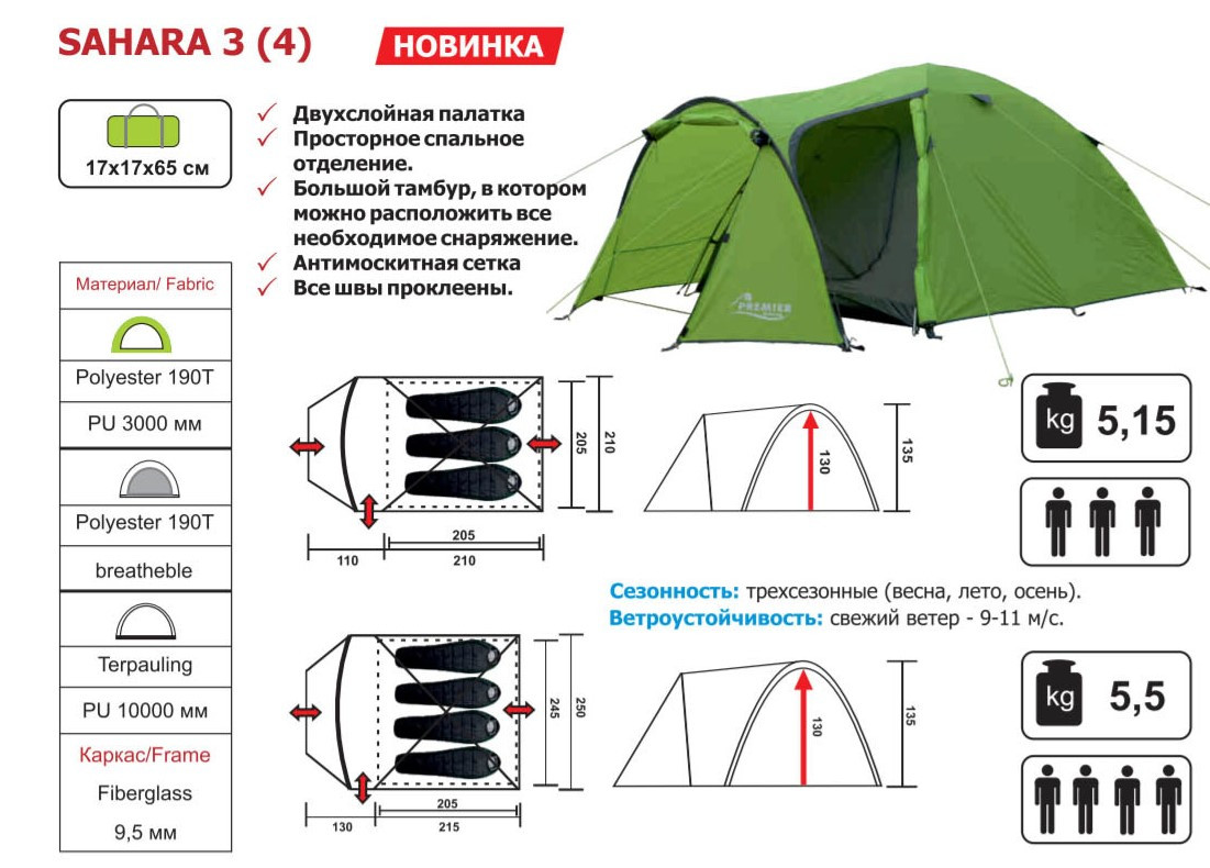 Палатка SAHARA-4 PREMIER – четырехместная палатка универсальной серии, которая идеально подойдет для походов и путешествий.