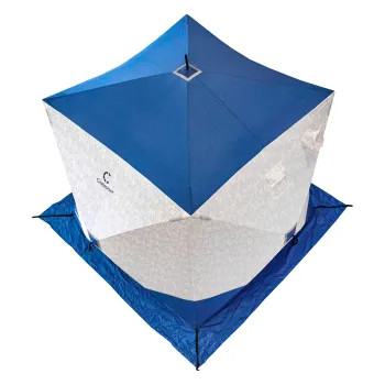 Палатка зимняя куб СЛЕДОПЫТ 2,1 х2,1 м Oxford 210D PU 1000 S по полу 4,4 кв.м синий/белый с принтом